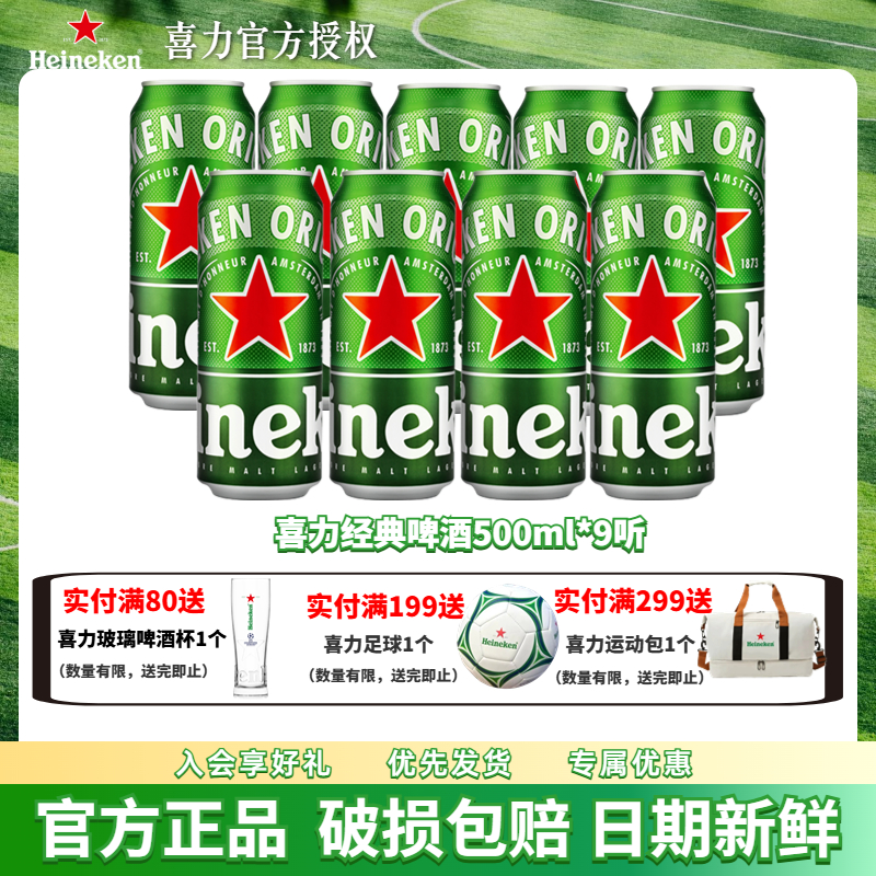 Heineken/喜力经典啤酒罐装500ml*9听铝罐全麦酿造拉格官方正品