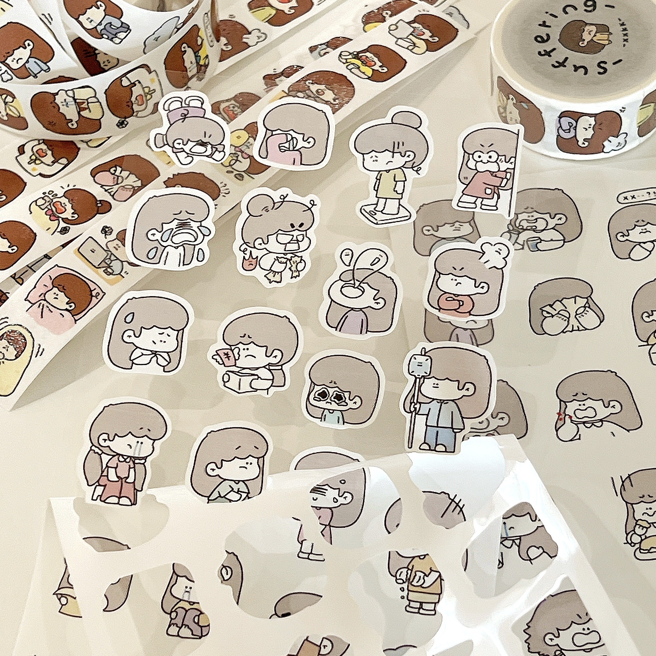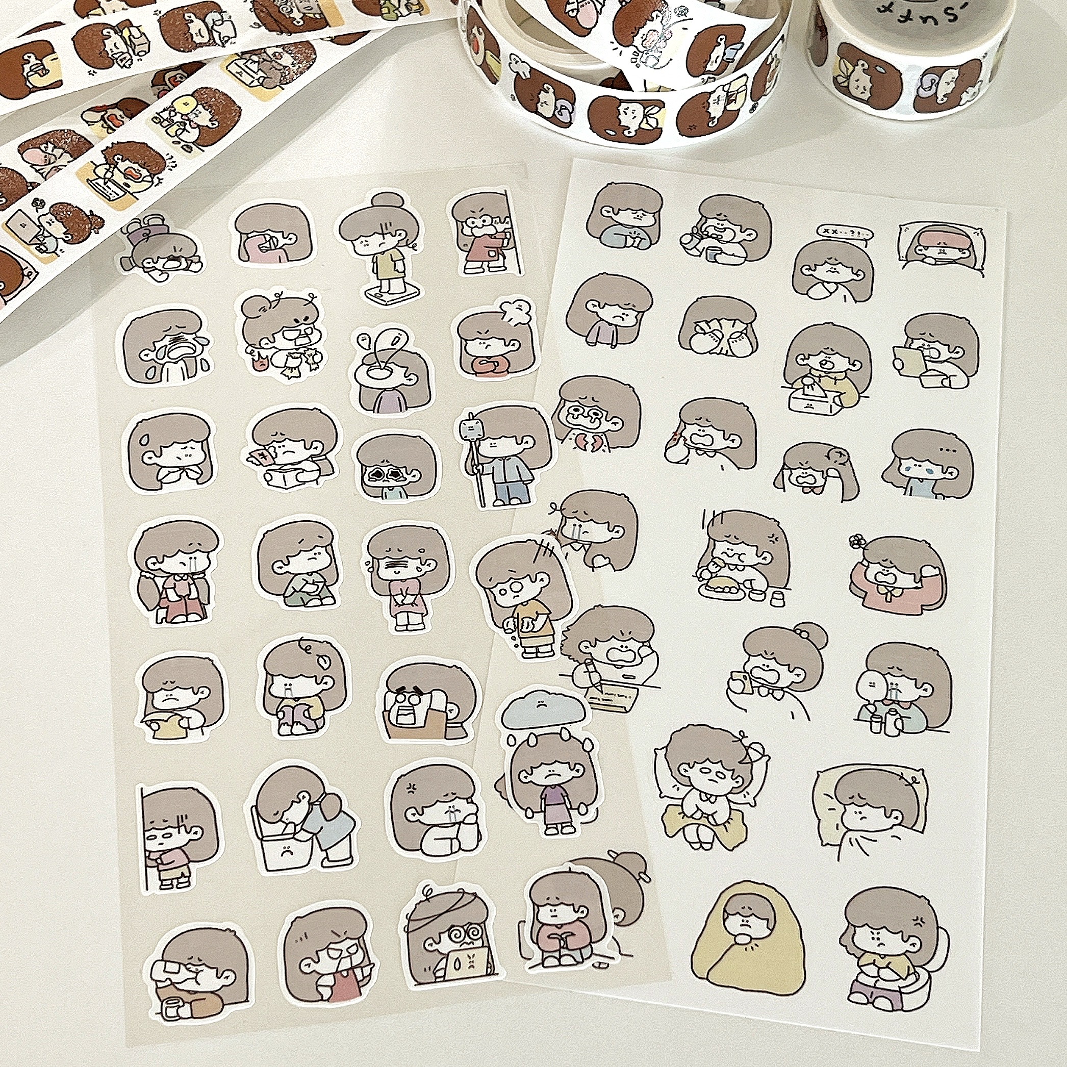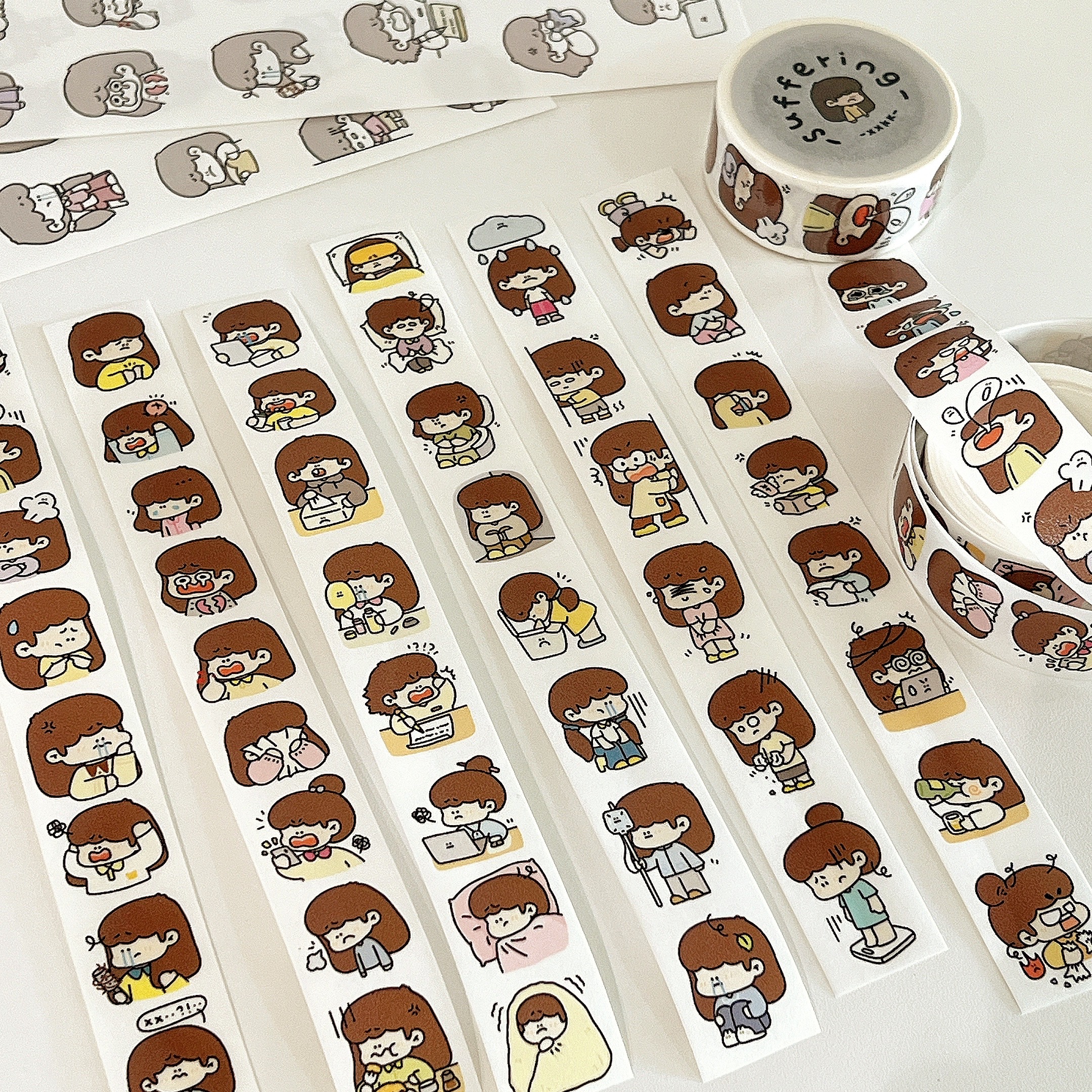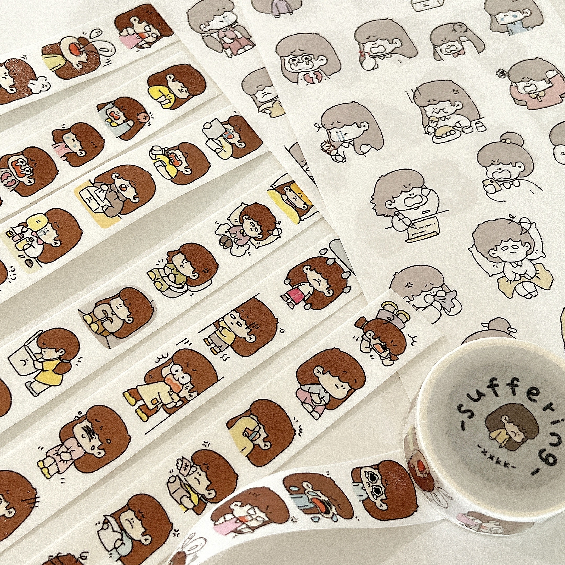 xxkk炫炫酷酷丨原创设计卡通手帐离型和纸胶带模切贴纸痛痛苦苦