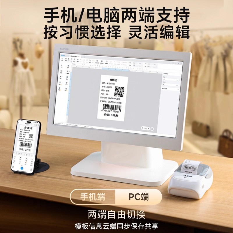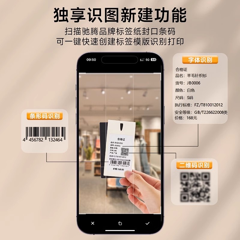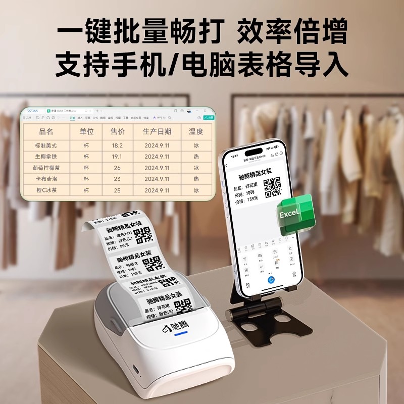 驰腾221B服装吊牌标签打印机男女装衣服店打价格条形码单张铭牌挂牌打码机二维码热敏标签机合格证不干胶贴纸