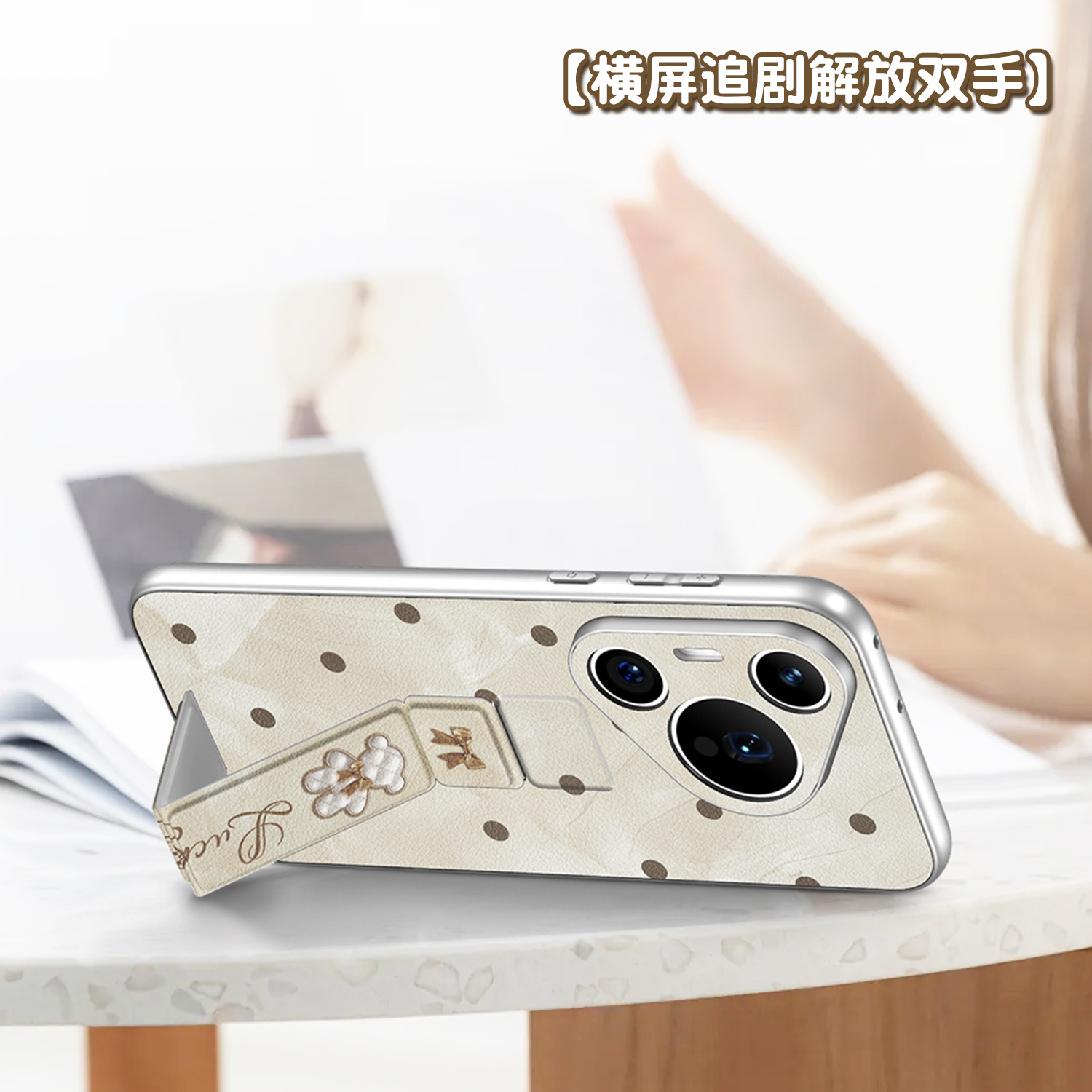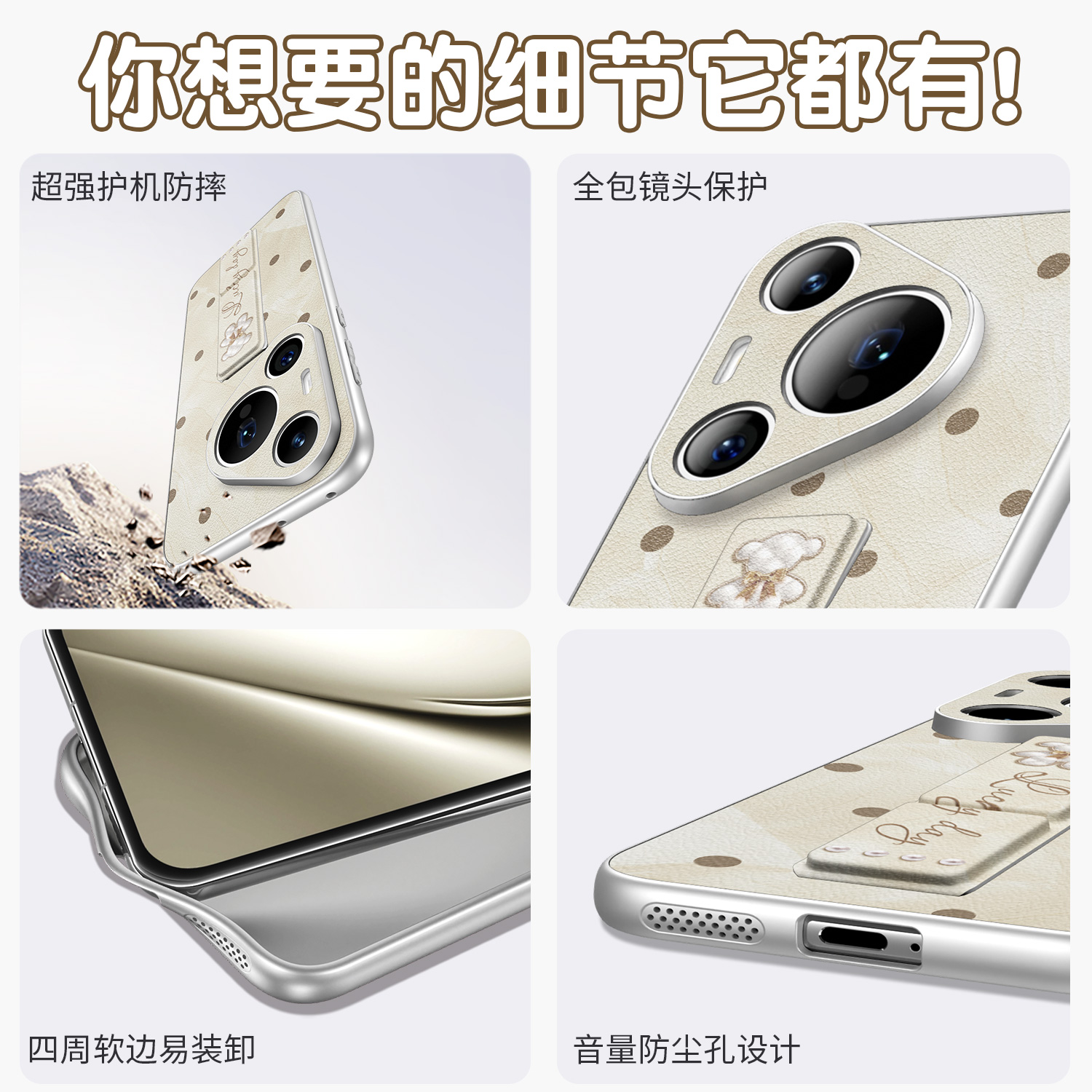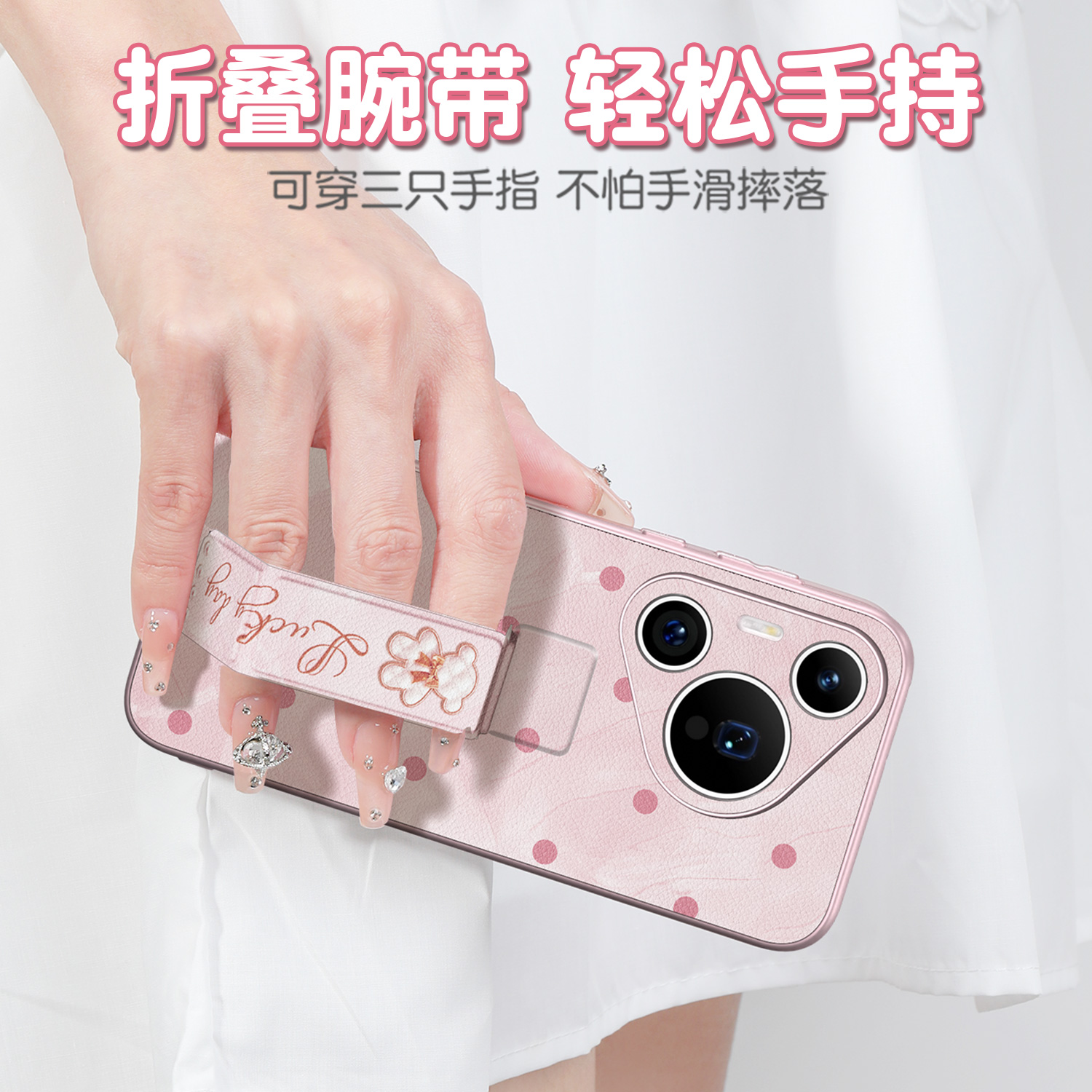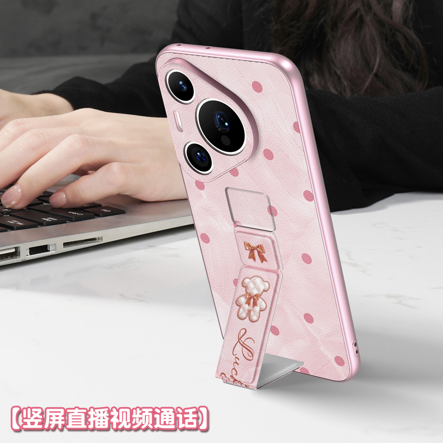 维泡适用华为pura70手机壳新款折叠腕带支架p70pro+素皮防摔全包镜头ultra小熊带挂绳prua轻奢波点保护套气质