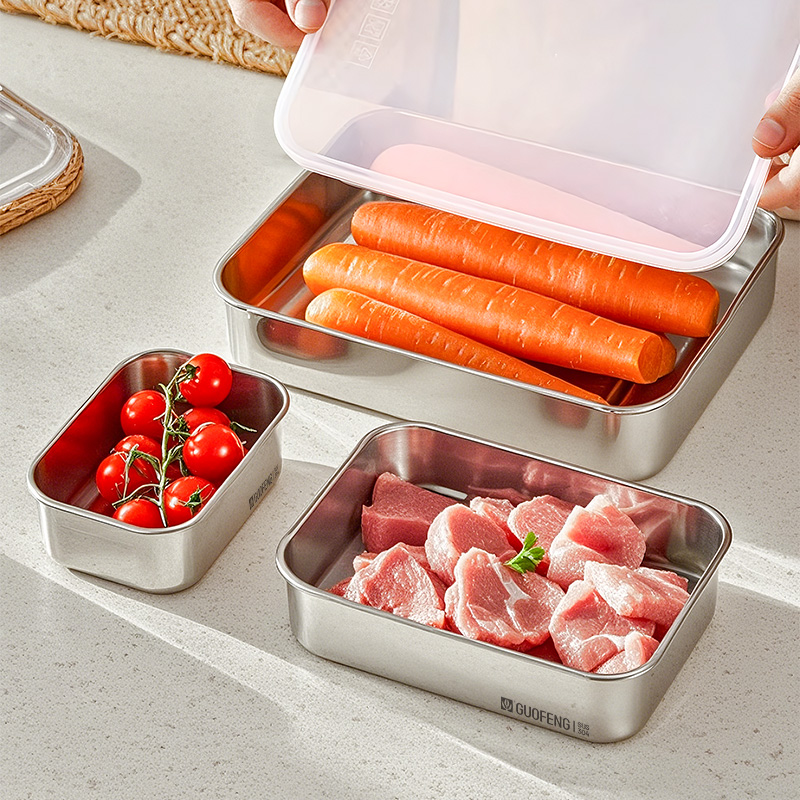 304不锈钢冰箱密封保鲜盒火锅备菜盘分装托盘饭盒便当盒饺子盒