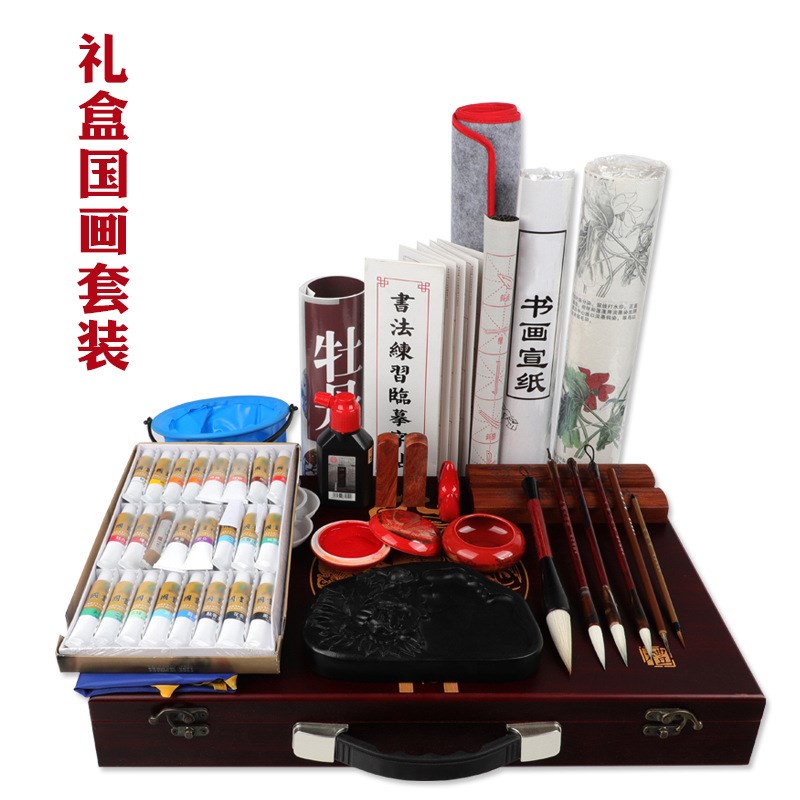 国画工具套装初学者学生成人国画颜料12色18色24色国画材料工具箱