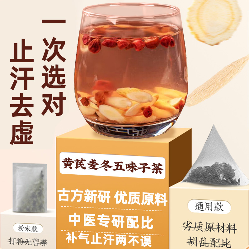 北京同仁堂黄芪麦冬五味子茶中草药材止汗包出汗多泡水组合茶包AA