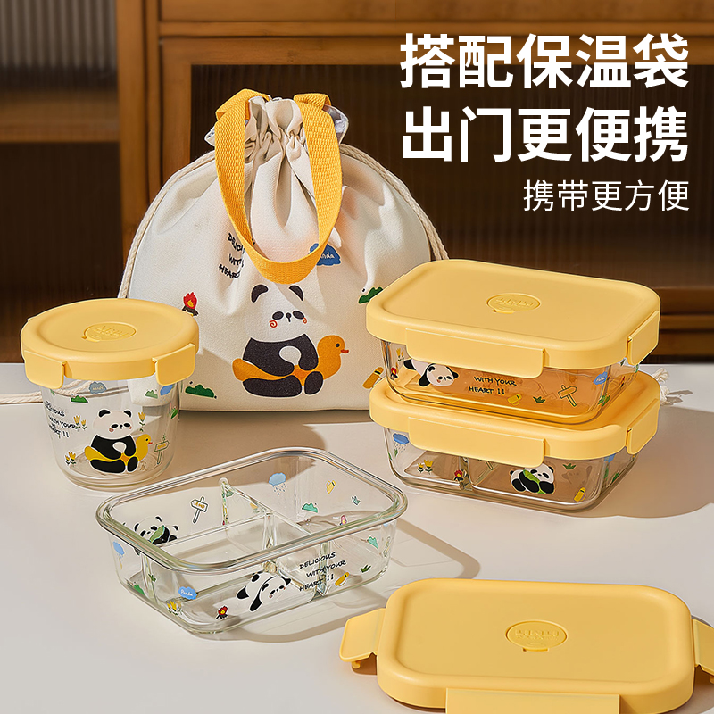 玻璃饭盒可微波炉加热专用上班族带饭装汤餐碗保鲜分隔型便当带盖