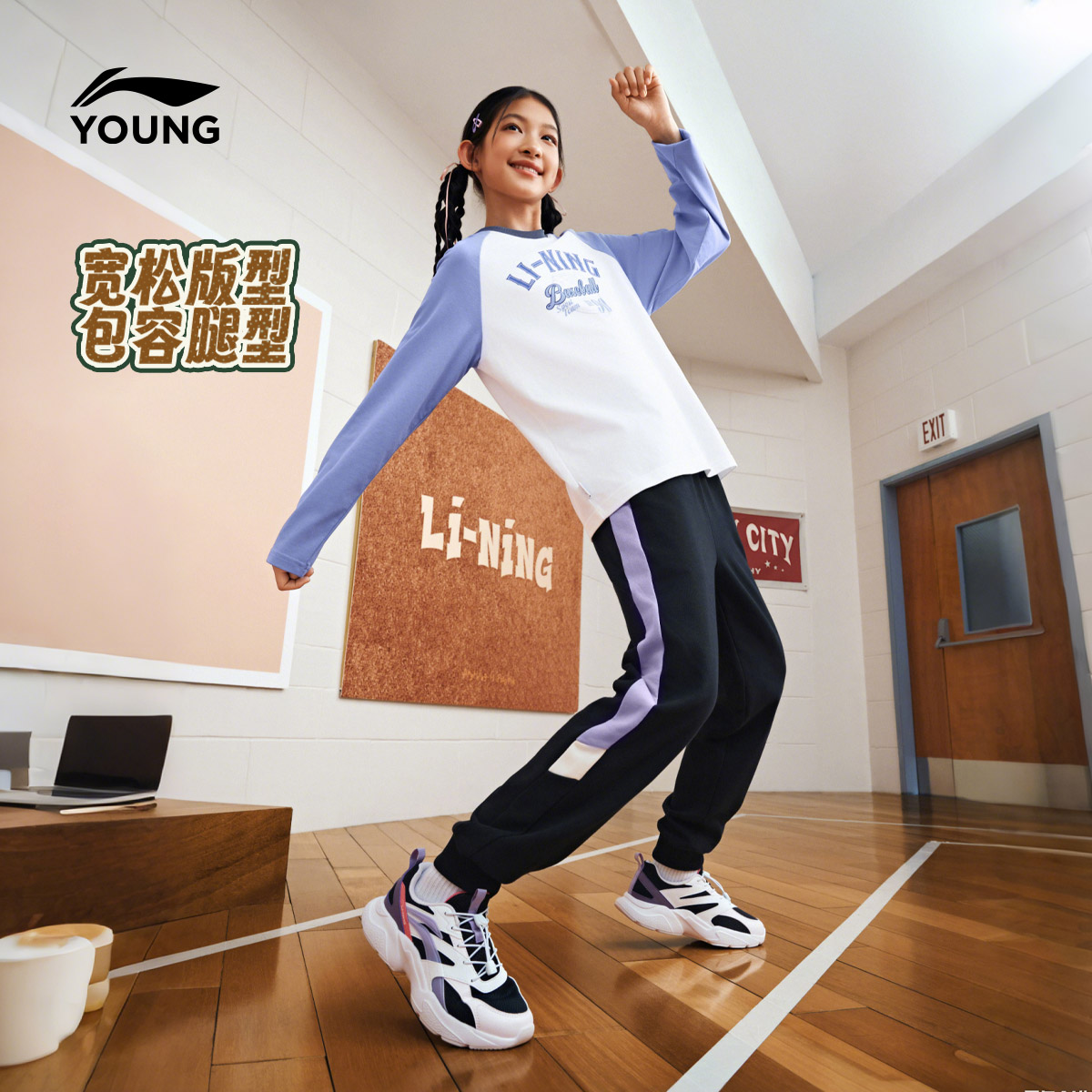 李宁童装卫裤女大童2025新款运动生活系列秋季休闲毛圈束脚童装