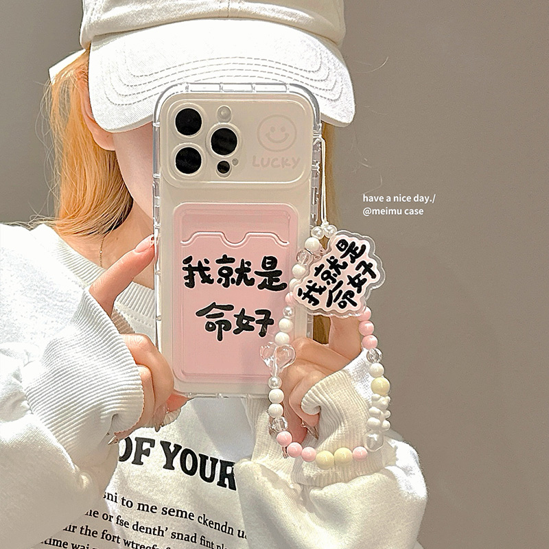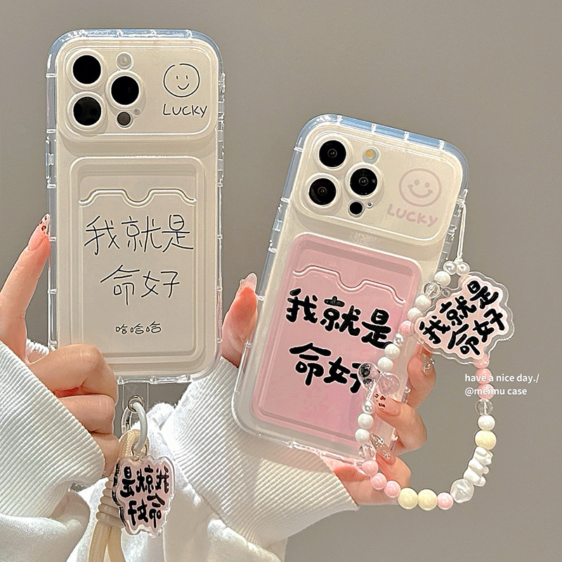 创意我就是命好文字卡包适用iPhone15promax手机壳苹果16新款13pro带挂绳12链条11超火女14promax趣味15全包