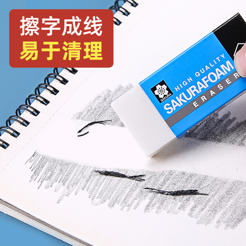 日本进口樱花橡皮擦无碎屑小学生文具象皮4B超干净2b像皮擦不留痕擦的干净高光美术素描绘画正版学生专用橡皮