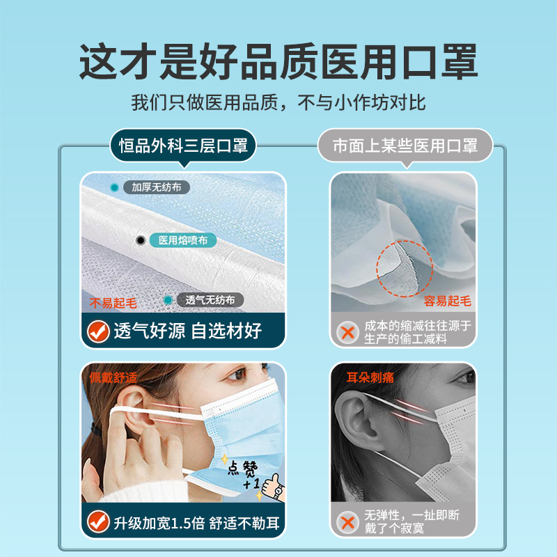 医用外科一次性医疗口罩单独包装成人防护正品官方女高颜值款透气