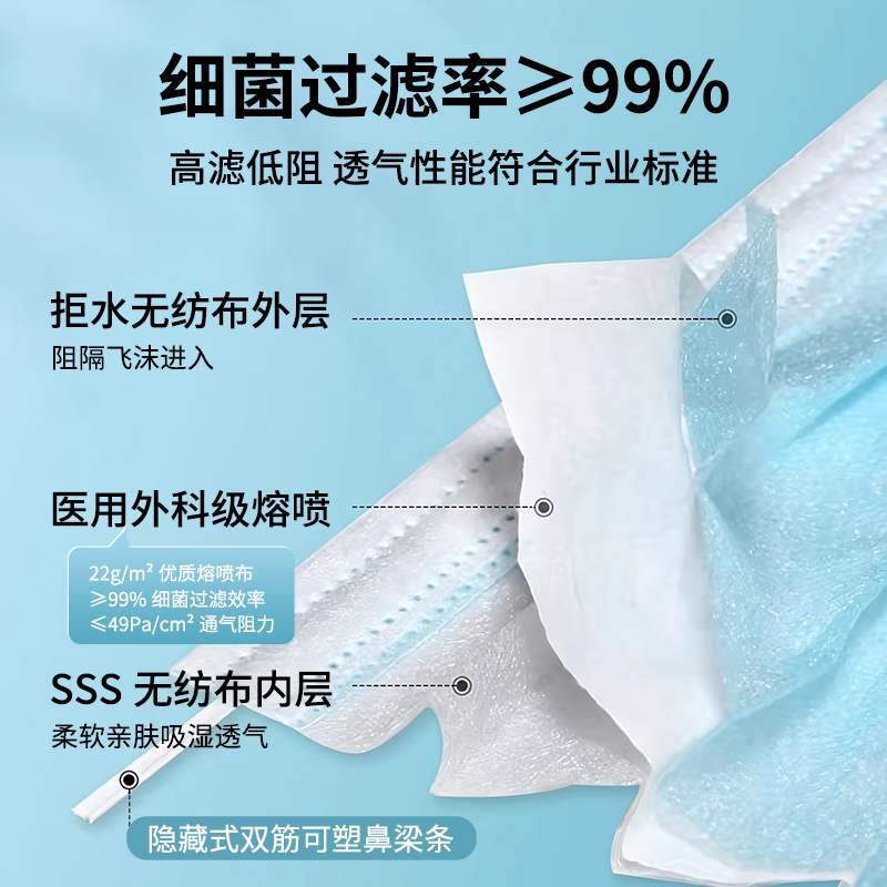 振德一次性医疗口罩医用外科防护儿童成人灭菌级独立装过敏性鼻炎