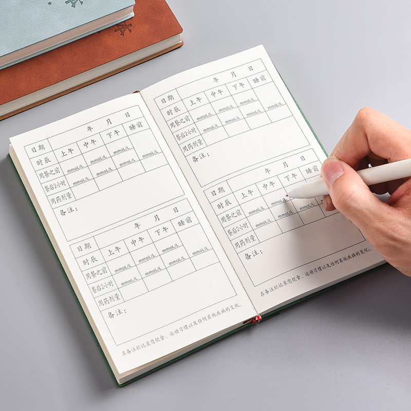 A6插笔款血糖记录本血压记录本家用方便糖尿病患者日常自我检测日记本携带高血压病人监测登记本自我记录表