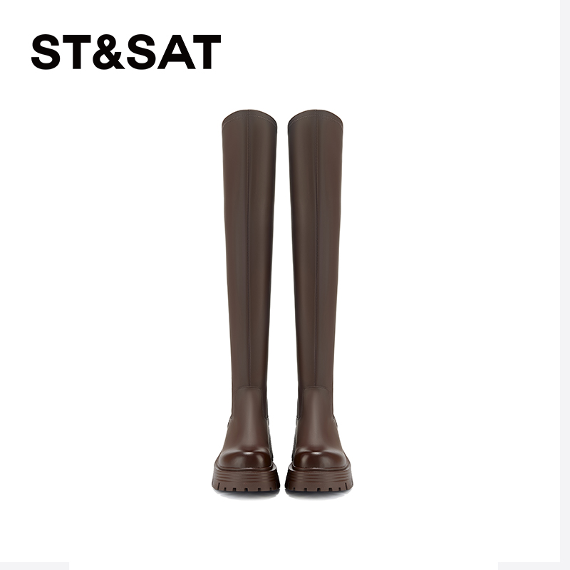 不二鞋坊 长筒靴女增高厚底真皮靴子弹力瘦瘦靴高筒骑士辣妹长靴