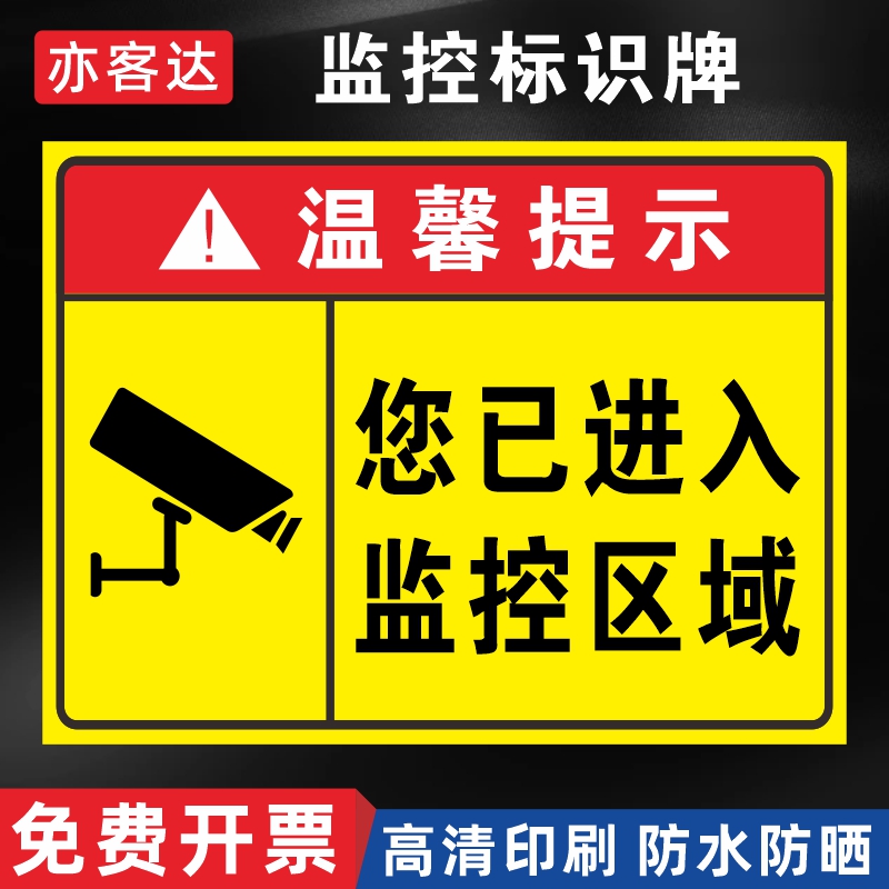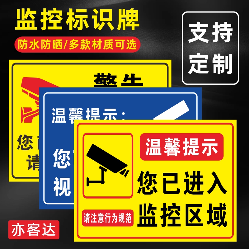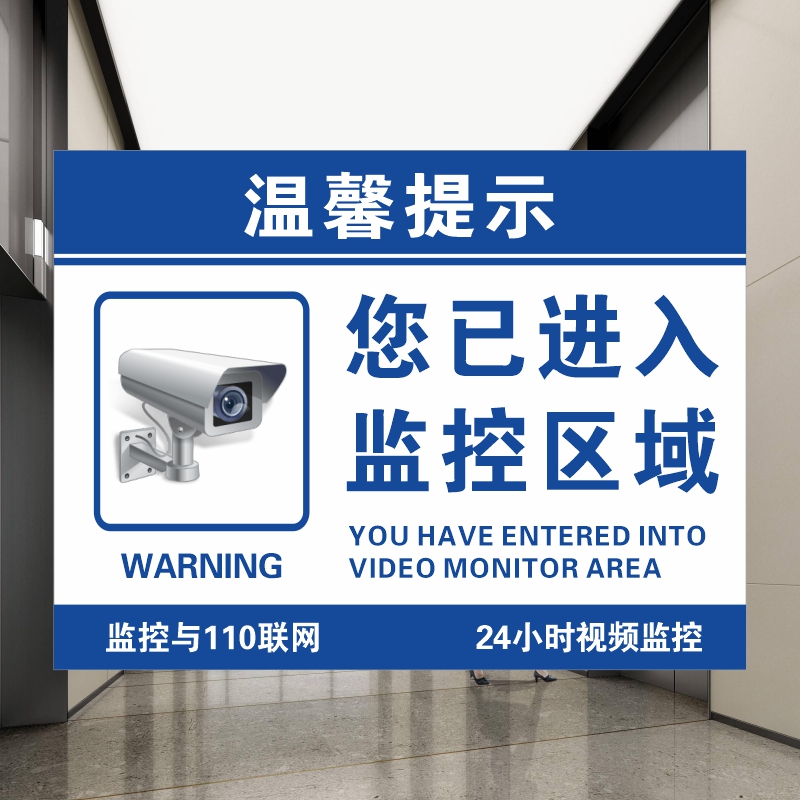 监控标识牌您已进入24小时监控区域警示牌温馨提示内有监控视频电子监控覆盖标识贴监控提示贴纸警告标语贴纸