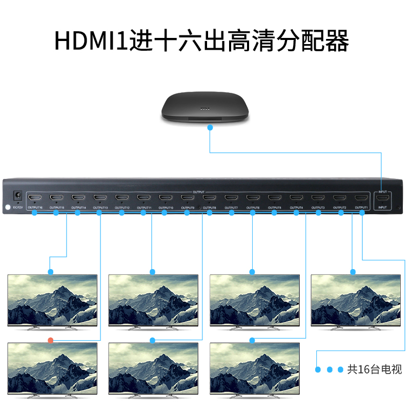 HDMI2.0分配器1进16出高清4k60P 电视机顶盒视频教学显示屏分频器