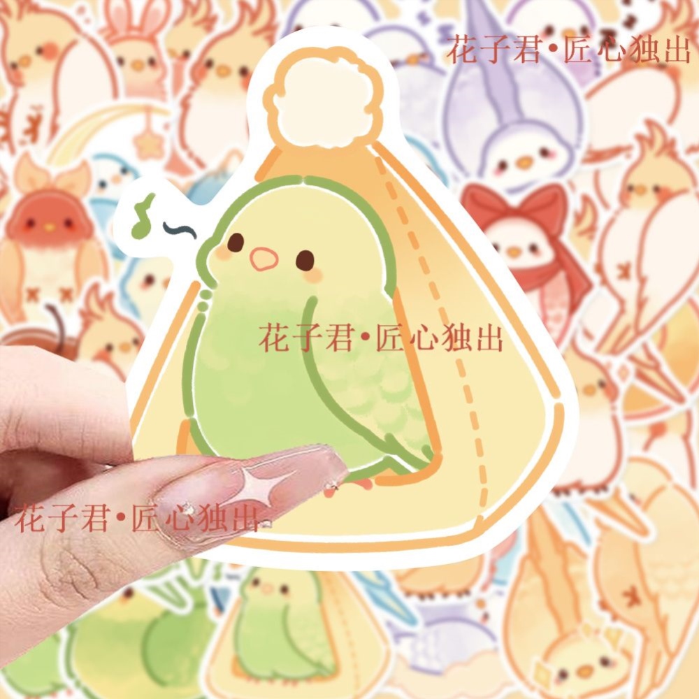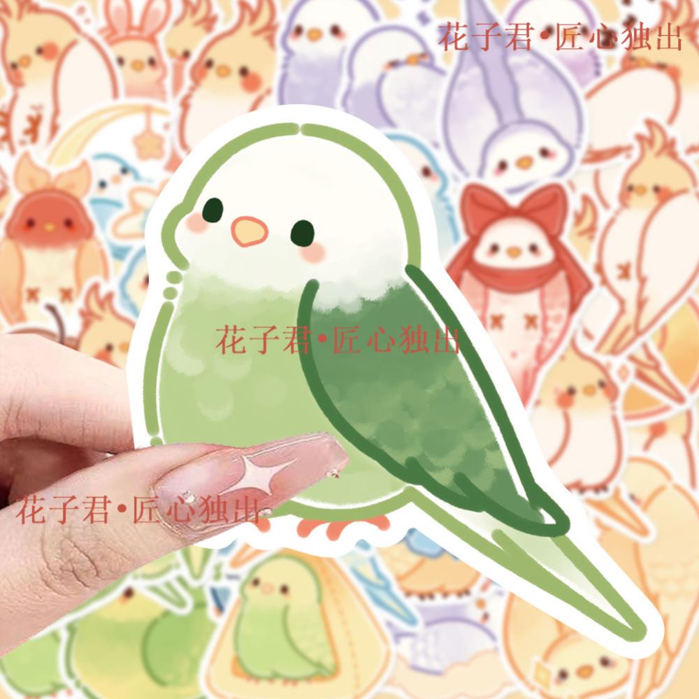 40张手绘鹦鹉小鸟贴纸小清新可爱创意手账手机壳电脑装饰防水贴画2025新款高颜值ins风小学生