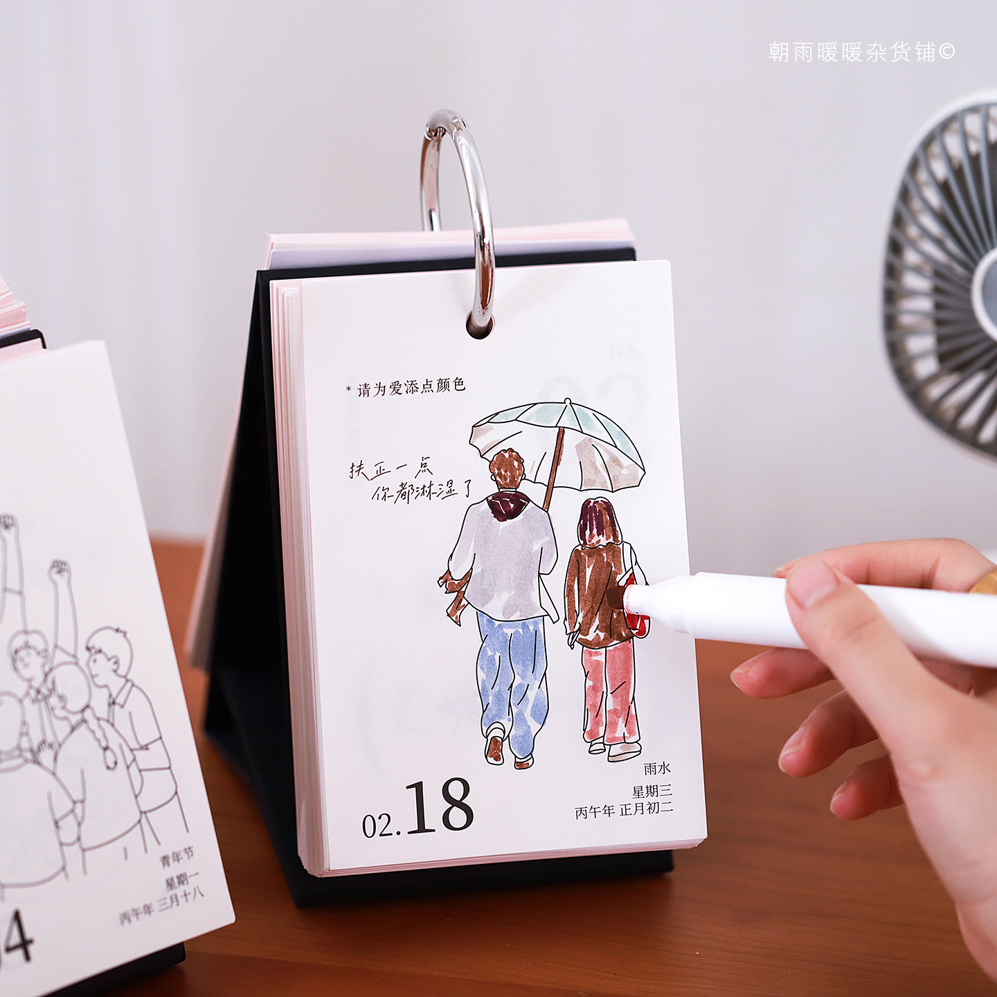 台历2026年新款创意简约办公桌面摆件月历卡通日程计划本ins风考研年历广告定制马年工作打卡小日历订做印刷