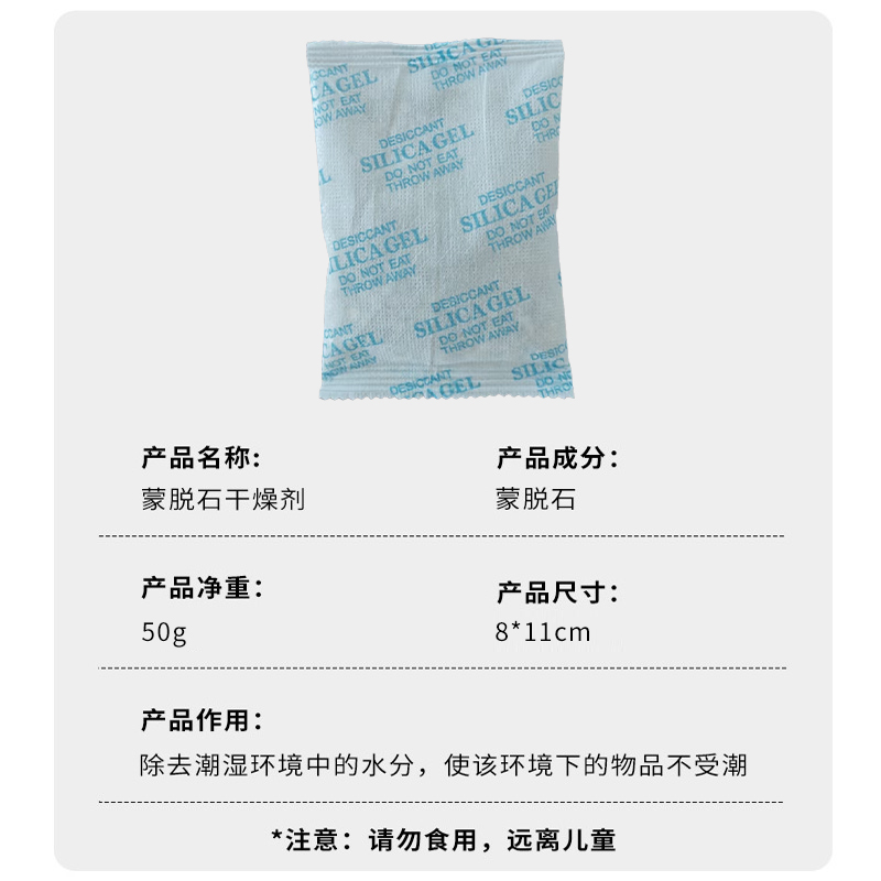 50g蒙脱石干燥剂环保工业防霉防潮防虫吸湿包衣柜家用室内除湿剂