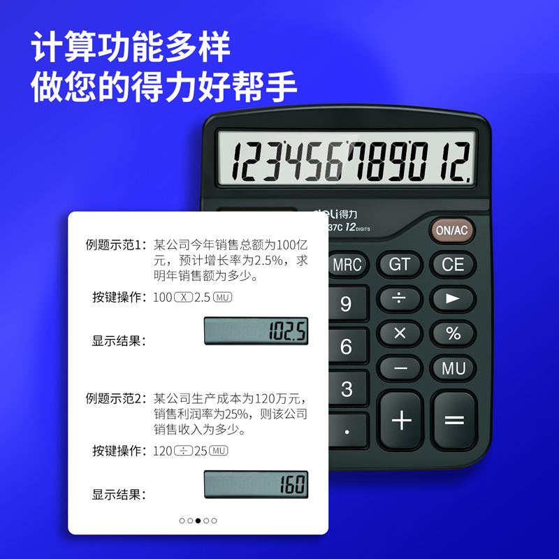 得力计算器办公用会计用太阳能桌面计算器学生用时尚款语音计算器小号便携式双电源商用计算器文具办公用品