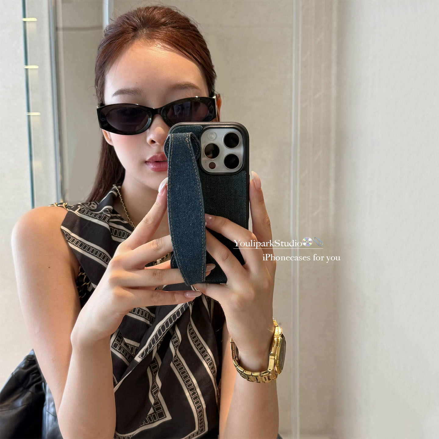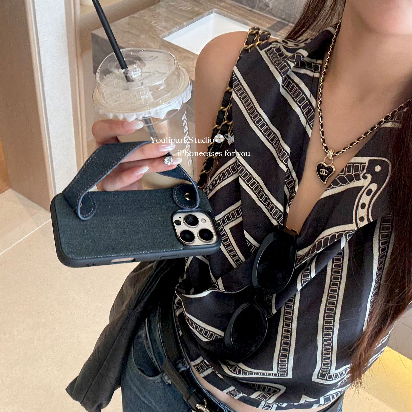 由里公园ins早秋复古简约时髦牛仔手腕带15适用17pro苹果17ProMax手机壳iPhone16全包17新款14Promax保护套女