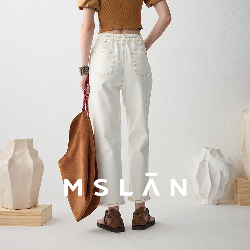 明线九分裤/MSLAN商场同款25夏法棍裤米白明显瘦牛仔裤MFDK028