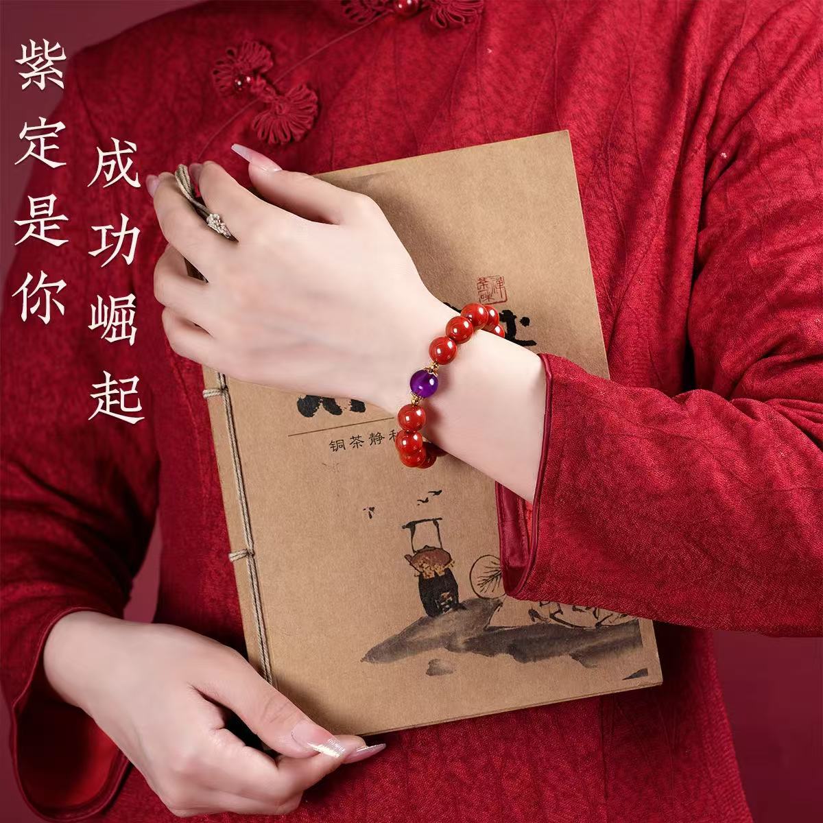 普陀山朱砂手串珠蛇年手链本命年普贤护身手镯官方旗舰店正品