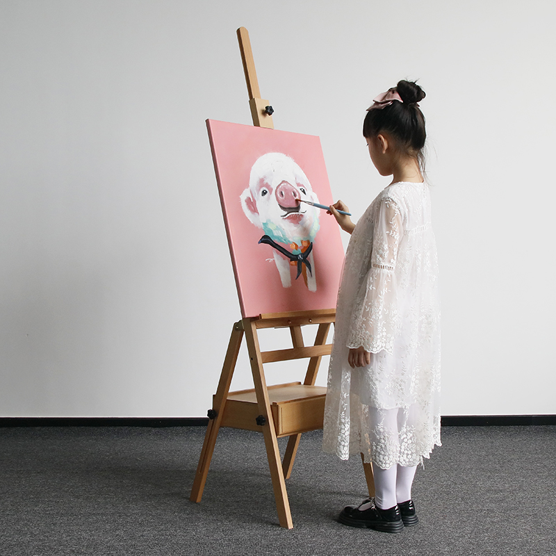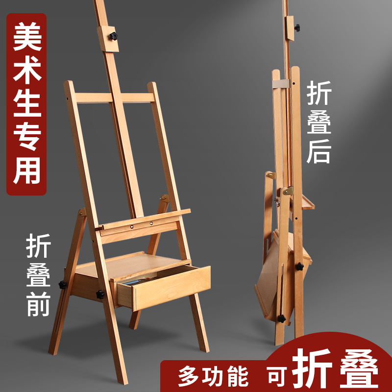 木质升降折叠抽屉式画架画板套装儿童绘画暑假班教学大人素描油画支架子收纳美术班水彩涂鸦便携平立木制画架