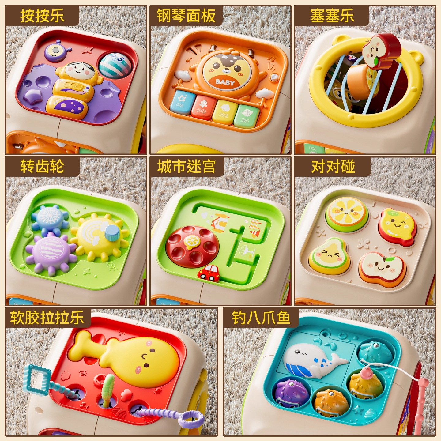 淘淘天才早教百宝箱六面体0到1岁6个月8婴幼儿童宝宝益智忙碌玩具