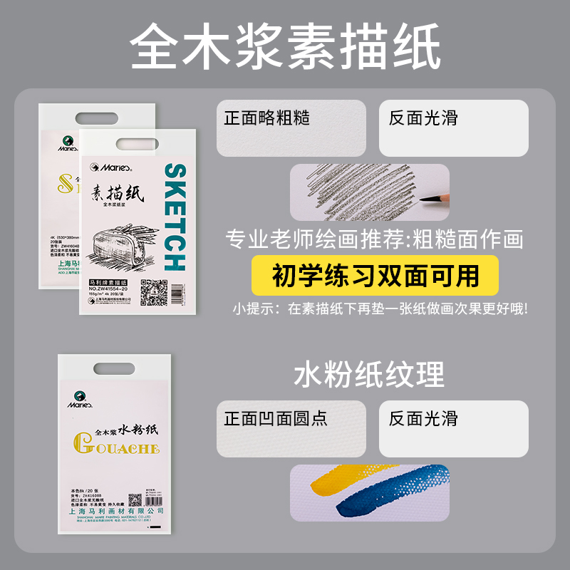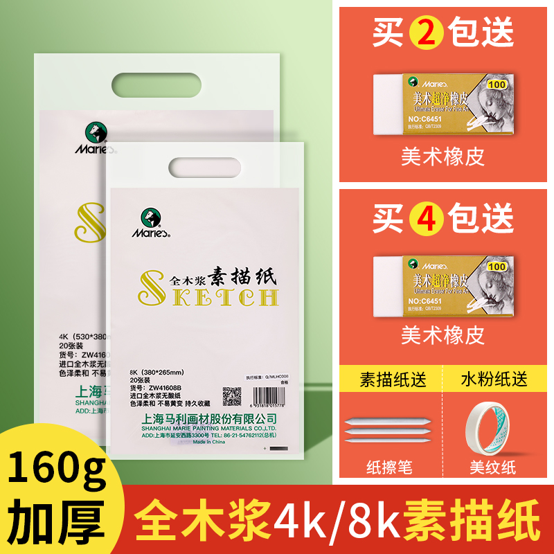 马利素描绘画纸美术生画室联考专用加厚速写画纸4K绘画纸铅画纸初学者儿童画画白纸四开速写学生用4k的素描纸