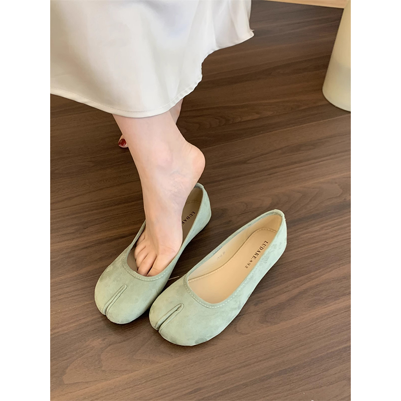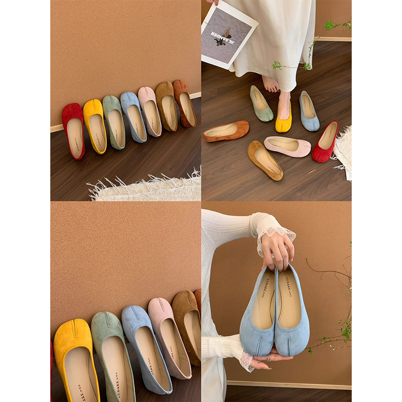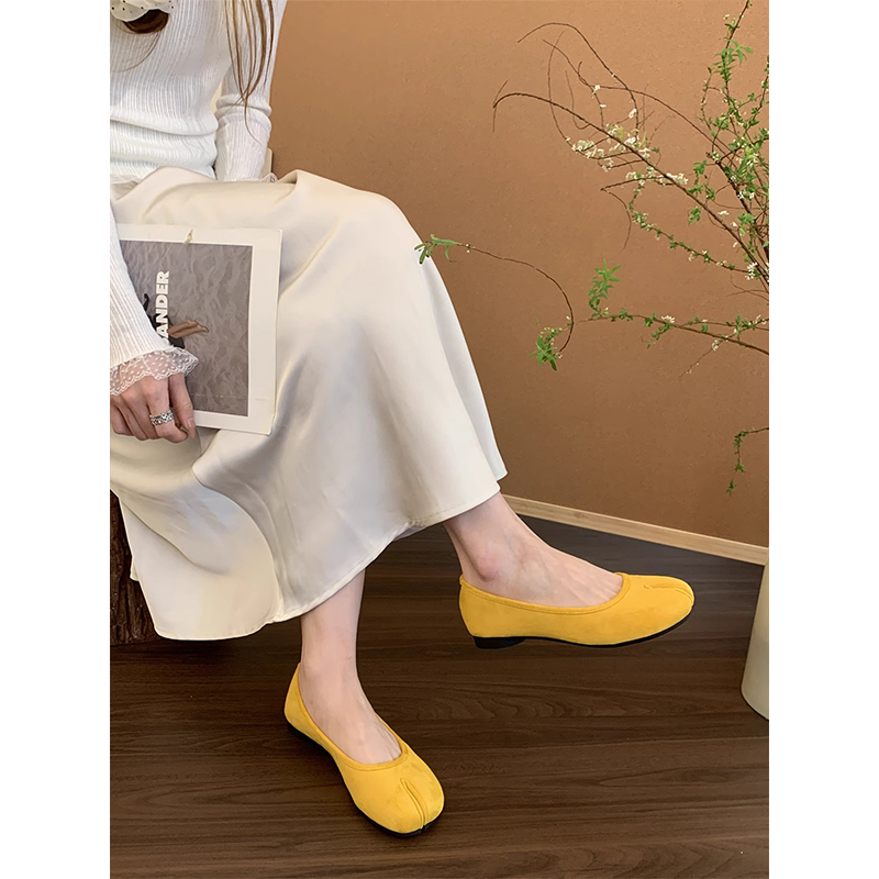 分趾猪蹄鞋早春红色单鞋女平底新款复古温柔仙女风一脚蹬豆豆鞋子