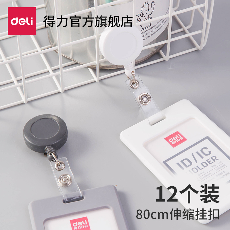 得力可伸缩扣12个装易拉扣证件卡挂绳10只吊夹金属夹子扣白领工作证厂牌不易断证件卡医生护士胸牌胸卡夹扣