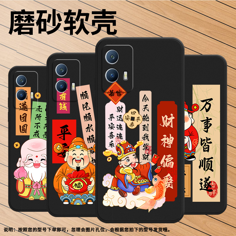 适用iQOOU5E手机壳iQOOU5x保护壳iQOOU5全包边5G磨砂壳V2165A潮流贴膜国潮潮流财源广进财源连连心之所愿防指