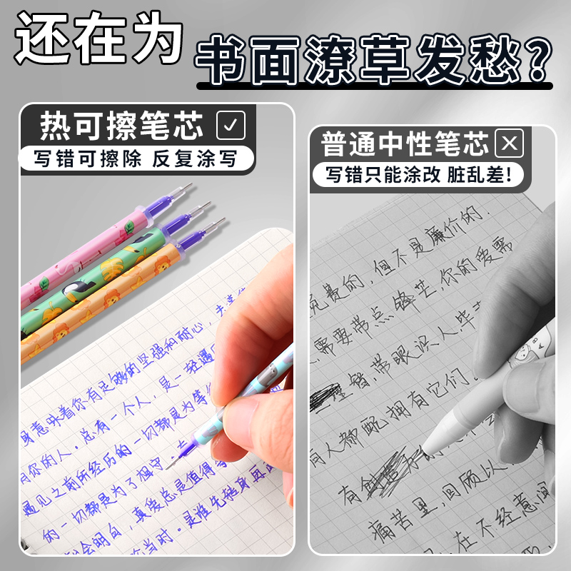 晨光热可擦笔芯替换芯小学生专用可擦笔笔芯黑色晶蓝色0.5全针管中性笔芯摩擦可擦笔芯摩易磨擦水笔官方正品