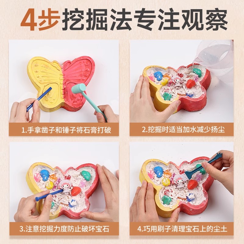 考古挖掘玩具女孩挖宝石盲盒寻宝石膏儿童挖宝藏砸敲化石手工探宝