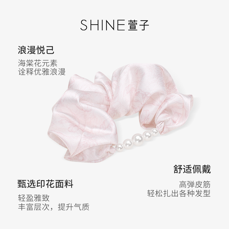 SHINE萱子饰品海棠系列花朵印花珍珠皮筋发圈缎面发绳生日礼物