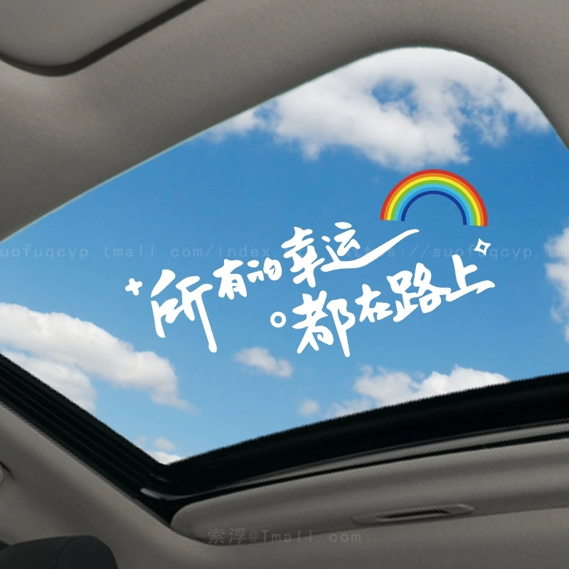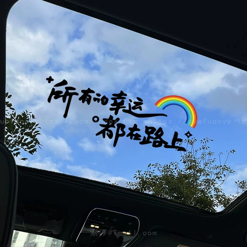 所有的幸运都在路上天窗贴励志治愈文字贴创意后档装饰汽车身贴纸