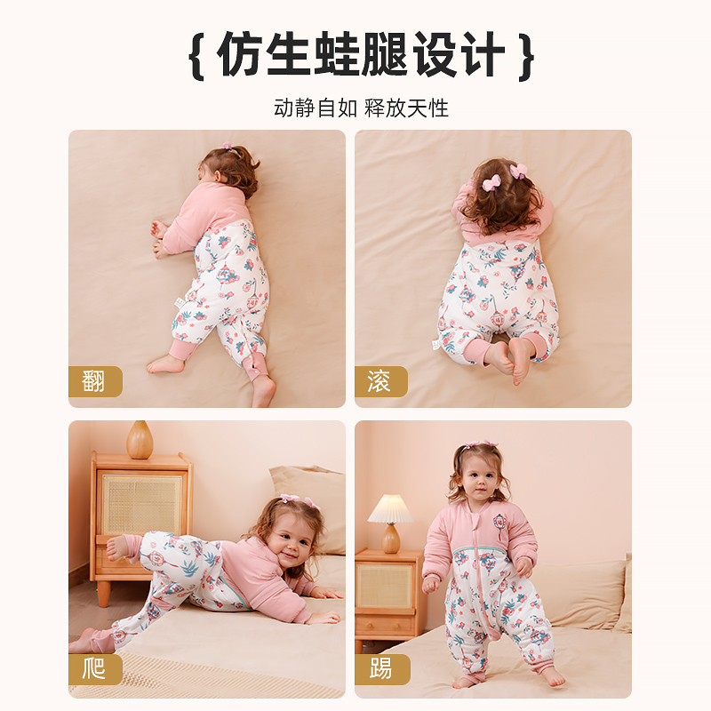 cutelife【轻羽】宝宝婴儿秋冬睡袋竹棉分腿儿童防踢被四季A类