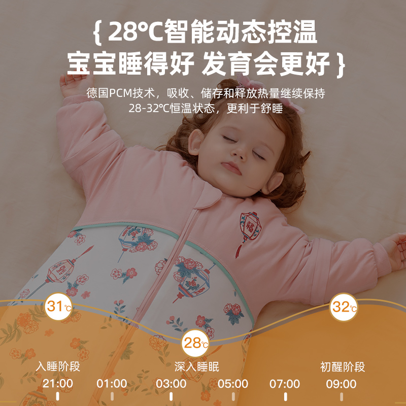 威尔贝鲁睡袋婴儿春秋冬款恒温宝宝分腿睡袋儿童防踢被子四季通用