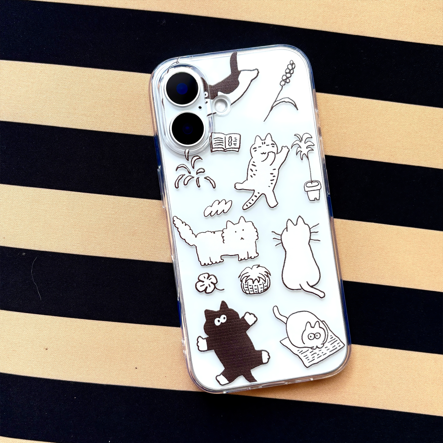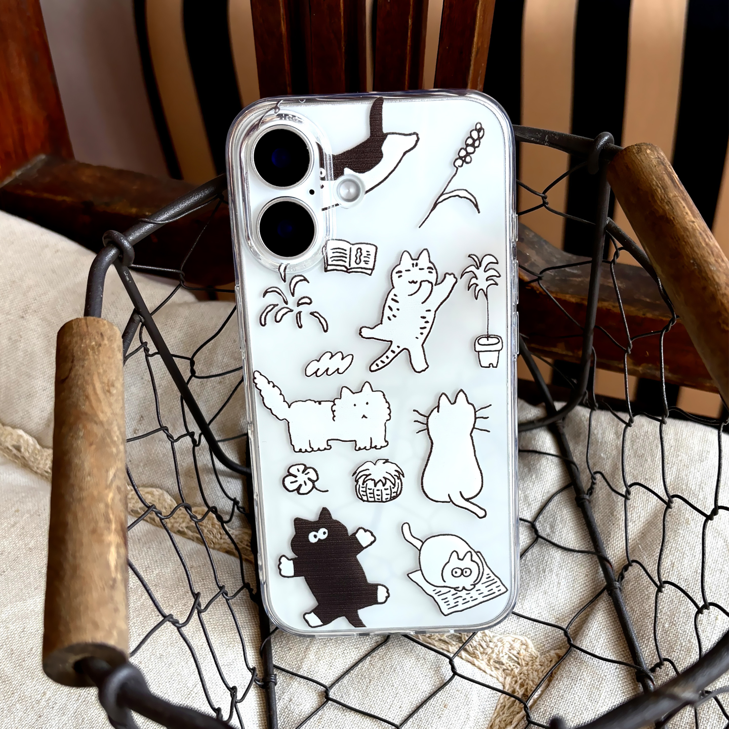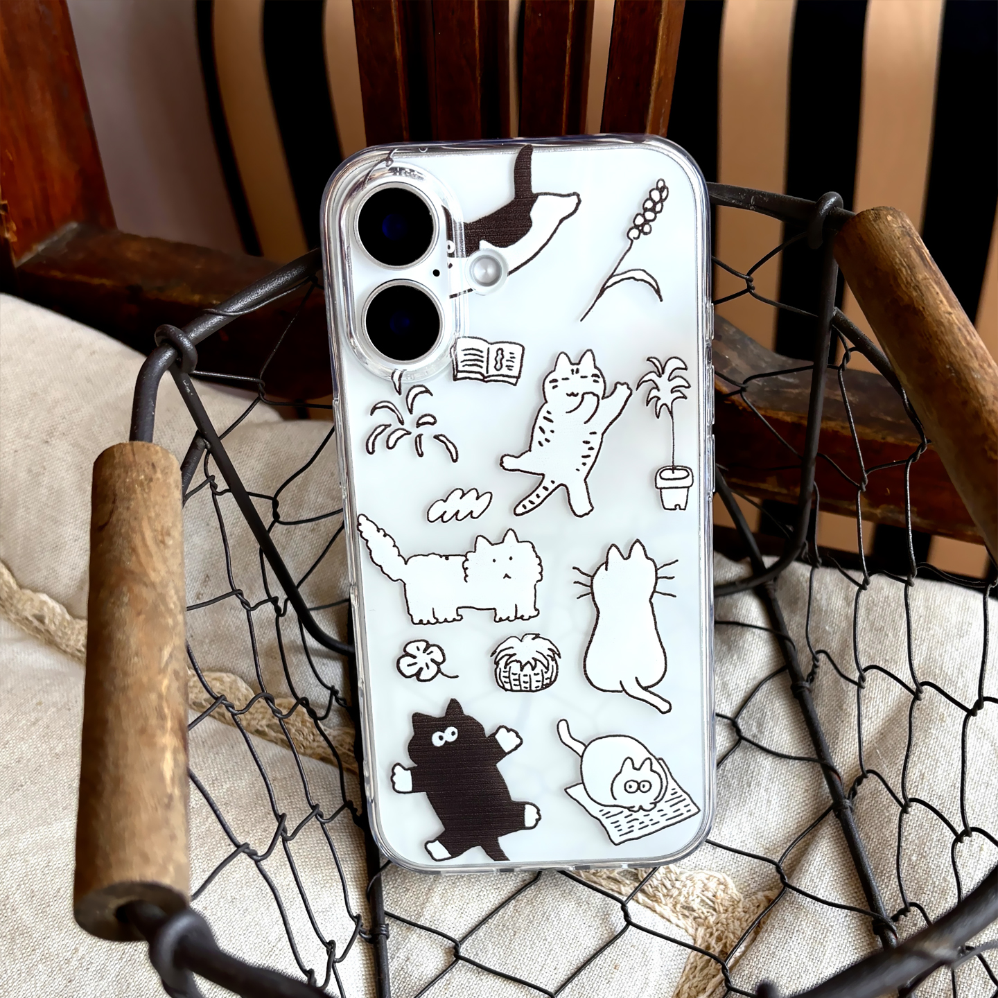 日韩ins风可爱趣味许多线条猫咪适用iPhone16promax苹果15plus/17air/14RPO/17pro简约手机壳全包男女