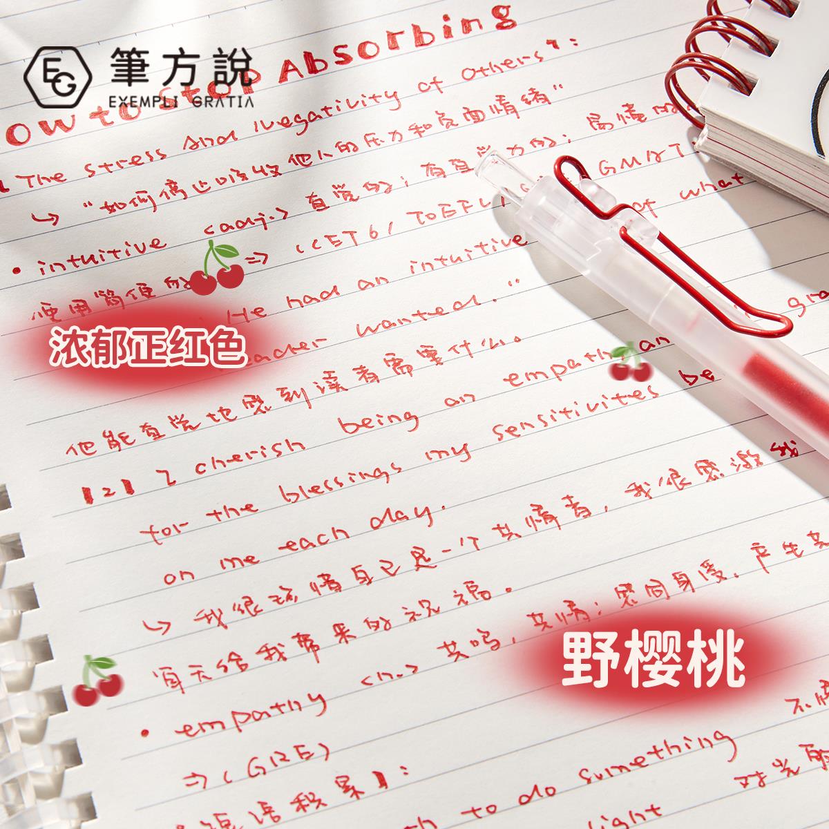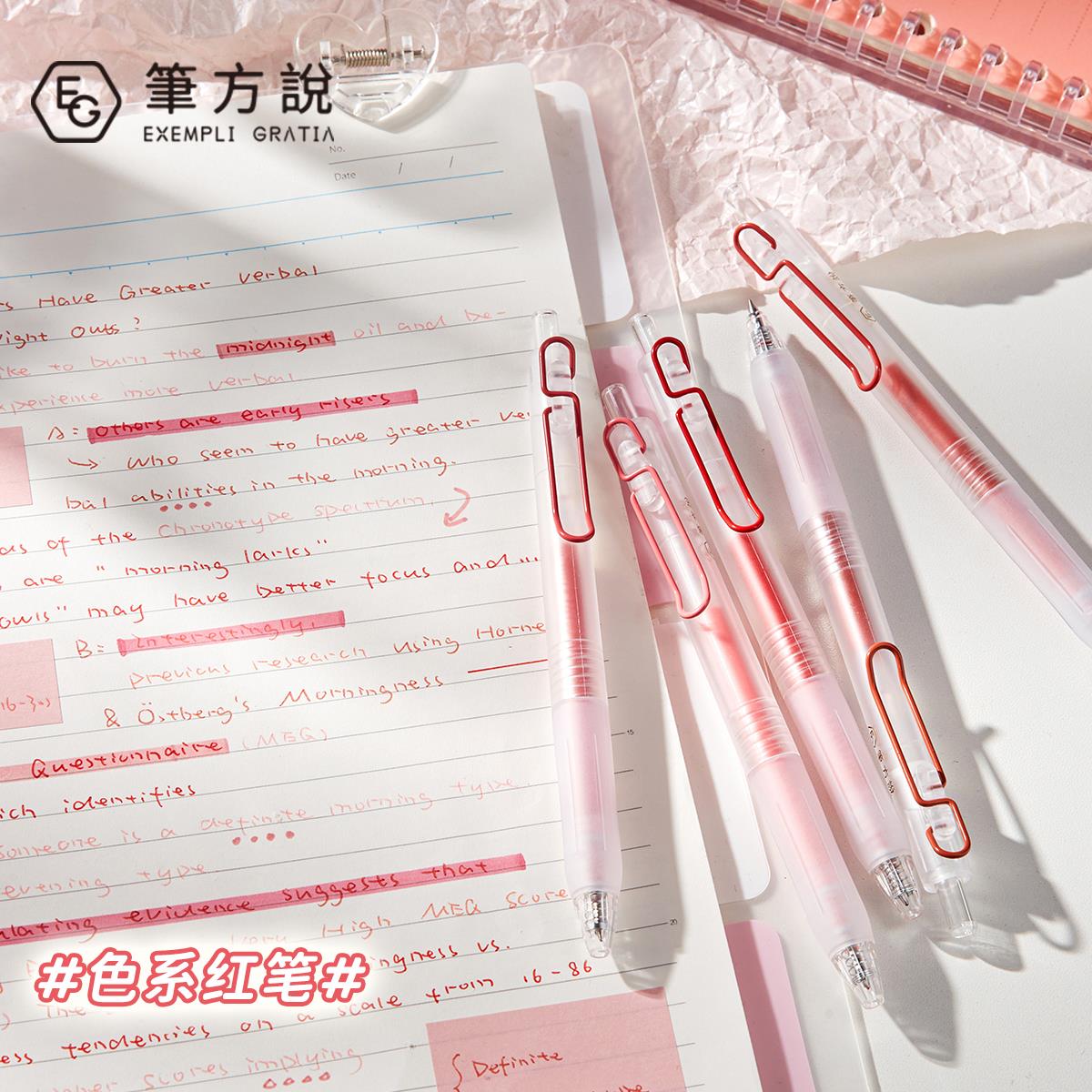 三年二班×点石红笔速干学生用红色中性笔老师专用粗头批改作业高颜值柔绘笔直液式刷题笔圆珠笔勃艮第红水笔