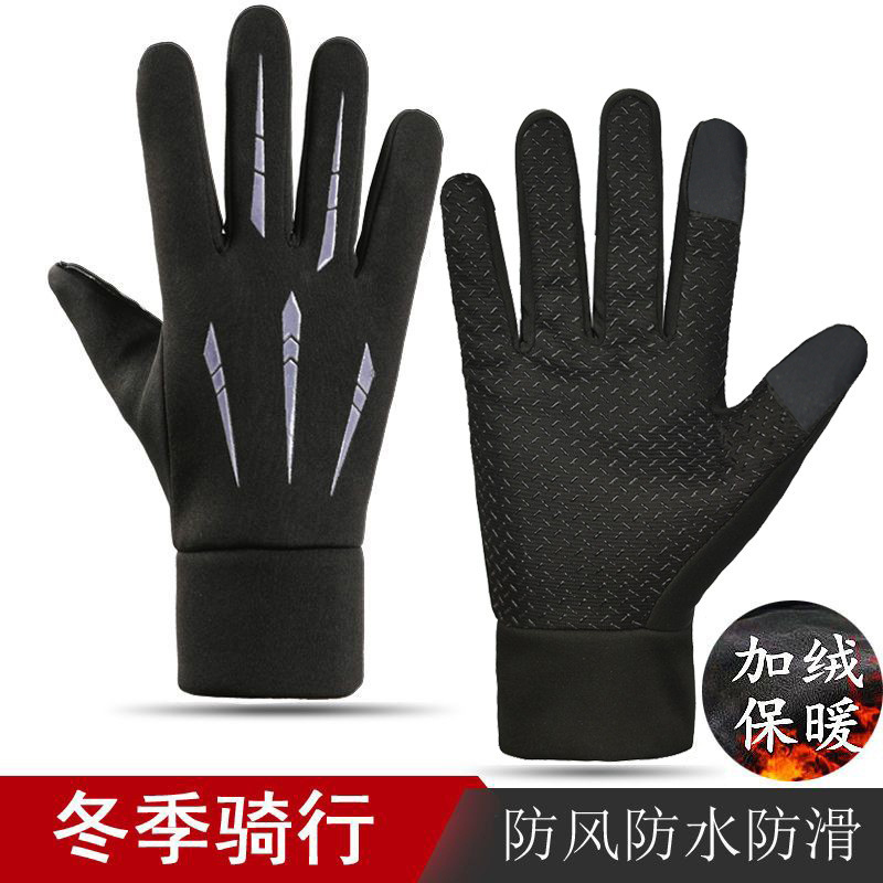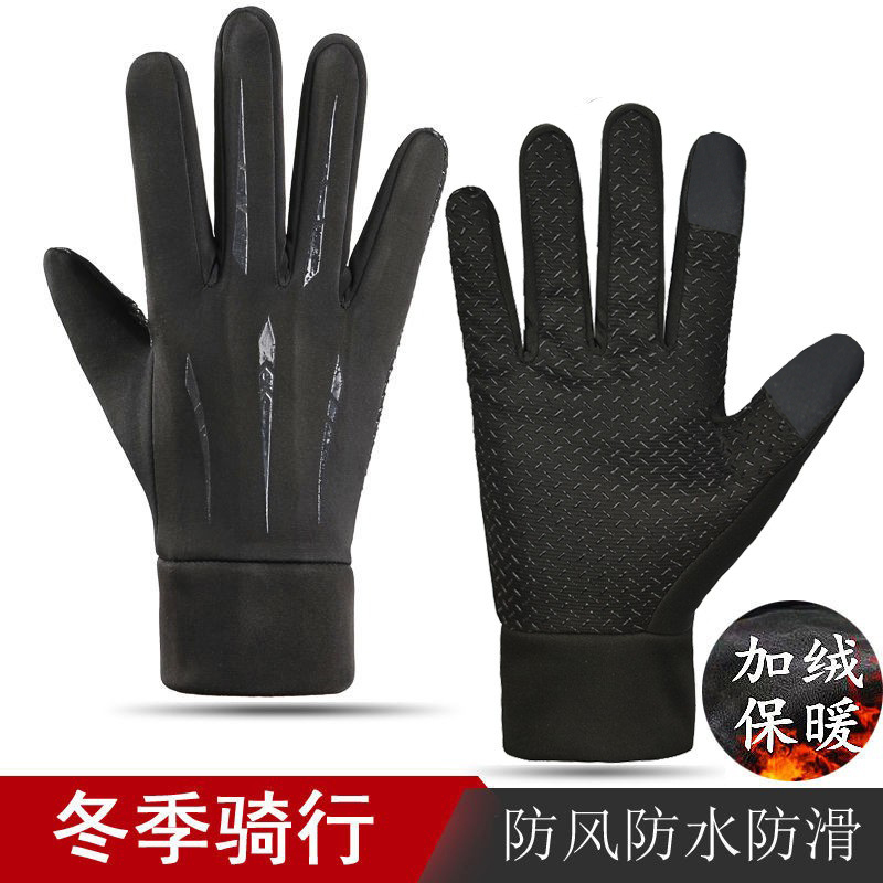 秋冬保暖手套外卖快递员骑行开车户外防寒加绒防风防泼水触屏全指