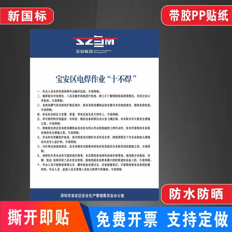高处作业六个必须电焊作业十不焊临时用电安全规定宝安区电焊标示