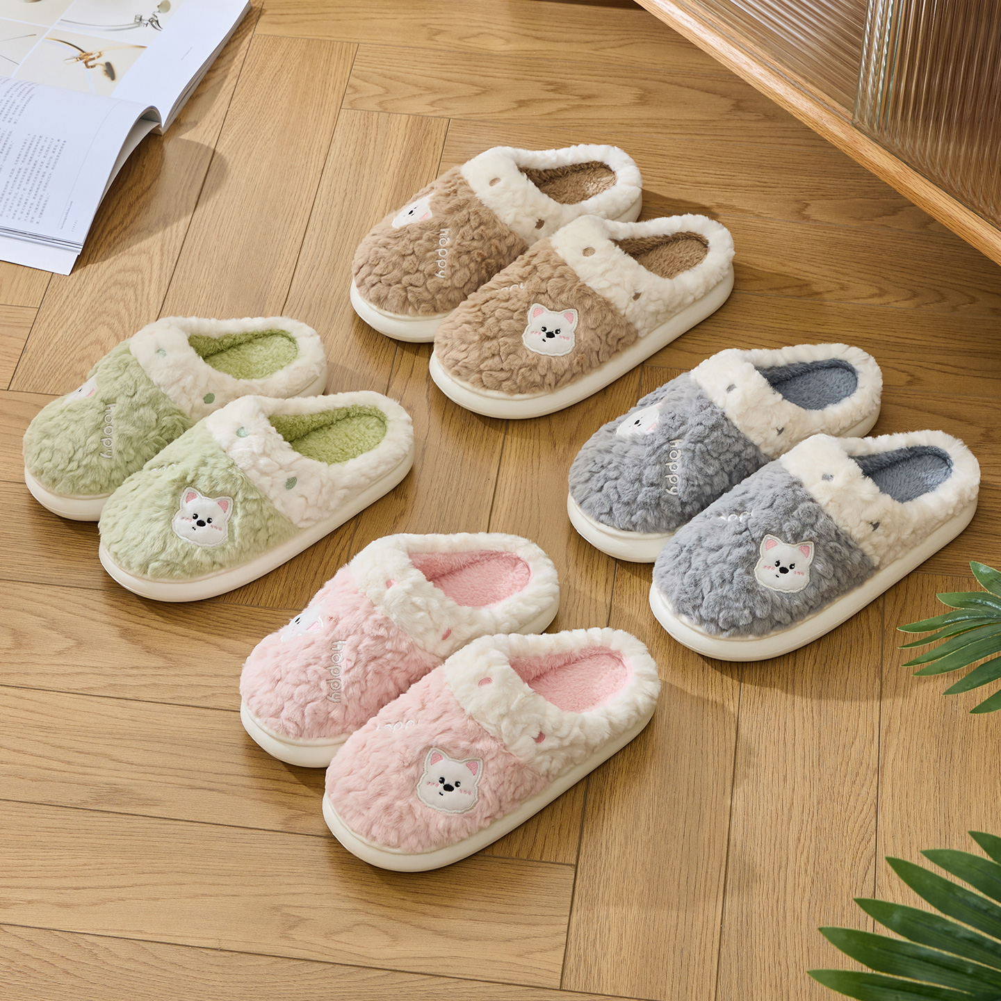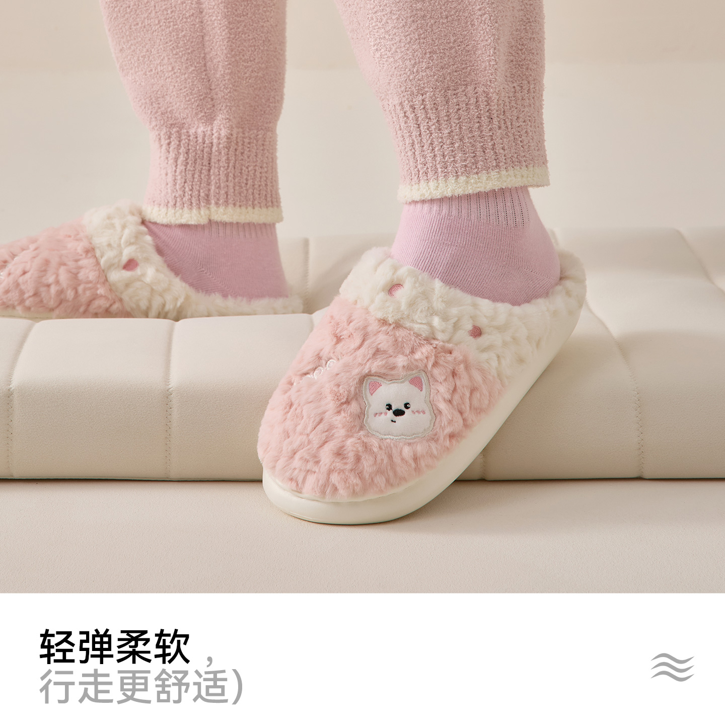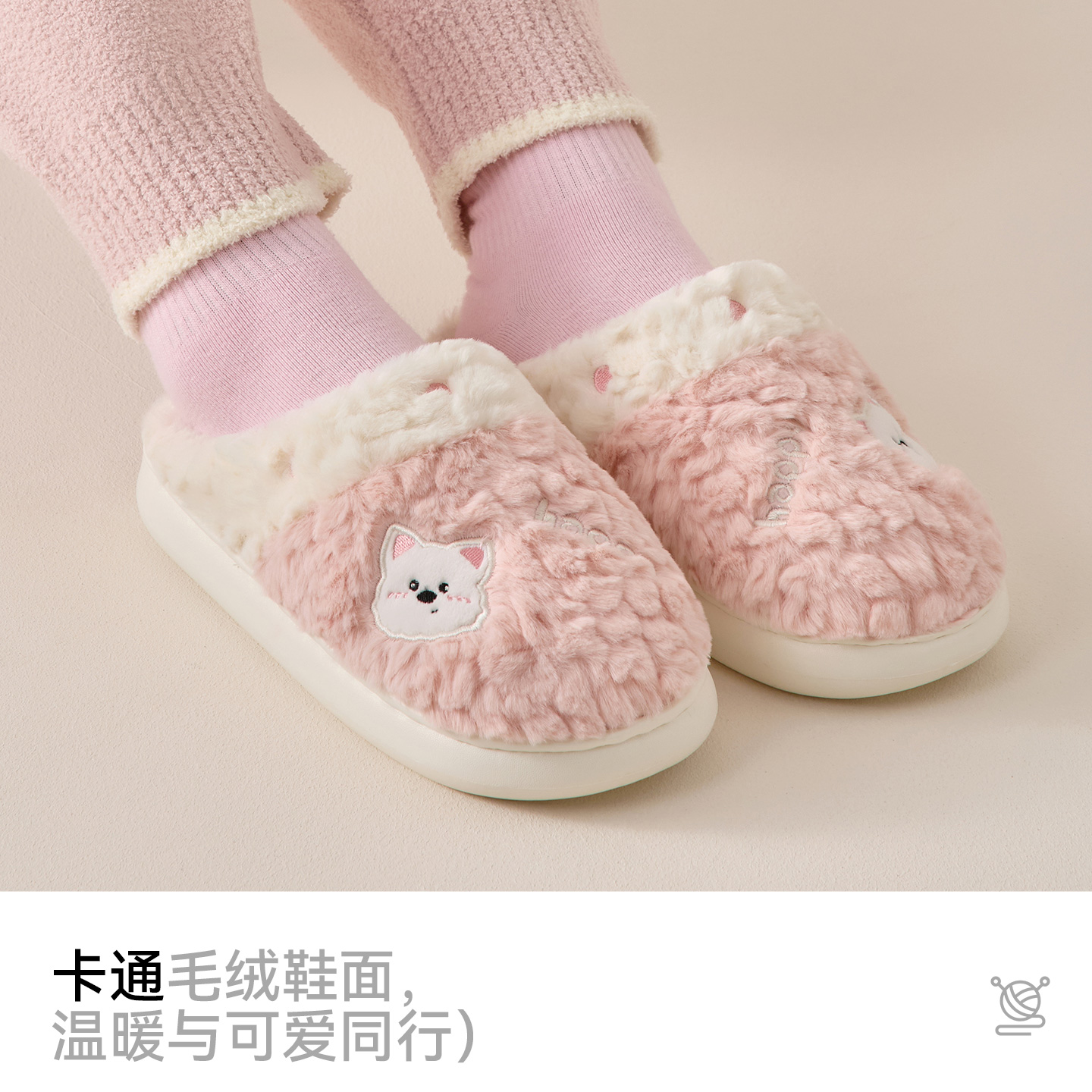 洁丽雅可爱棉拖鞋女款秋冬季居家室内卡通情侣毛毛绒拖鞋男士冬天