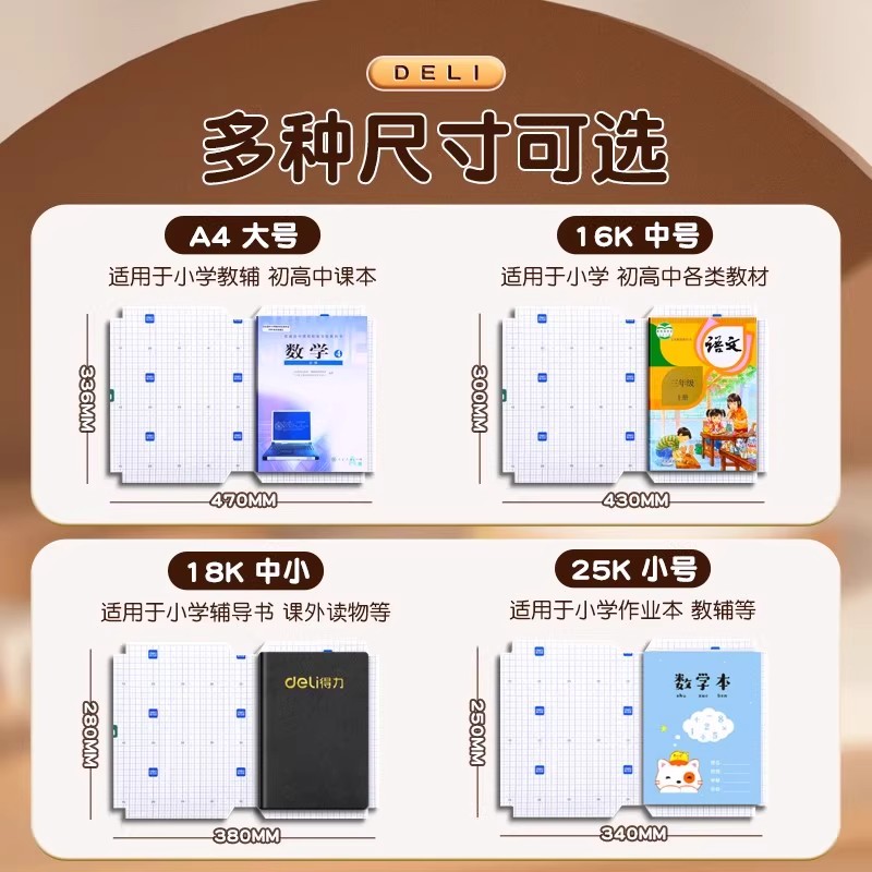 得力书皮贴纸自粘透明磨砂包书膜一年级下册包书皮书套小学生二三四年级课本A4书壳保护套16K包书纸2025新款