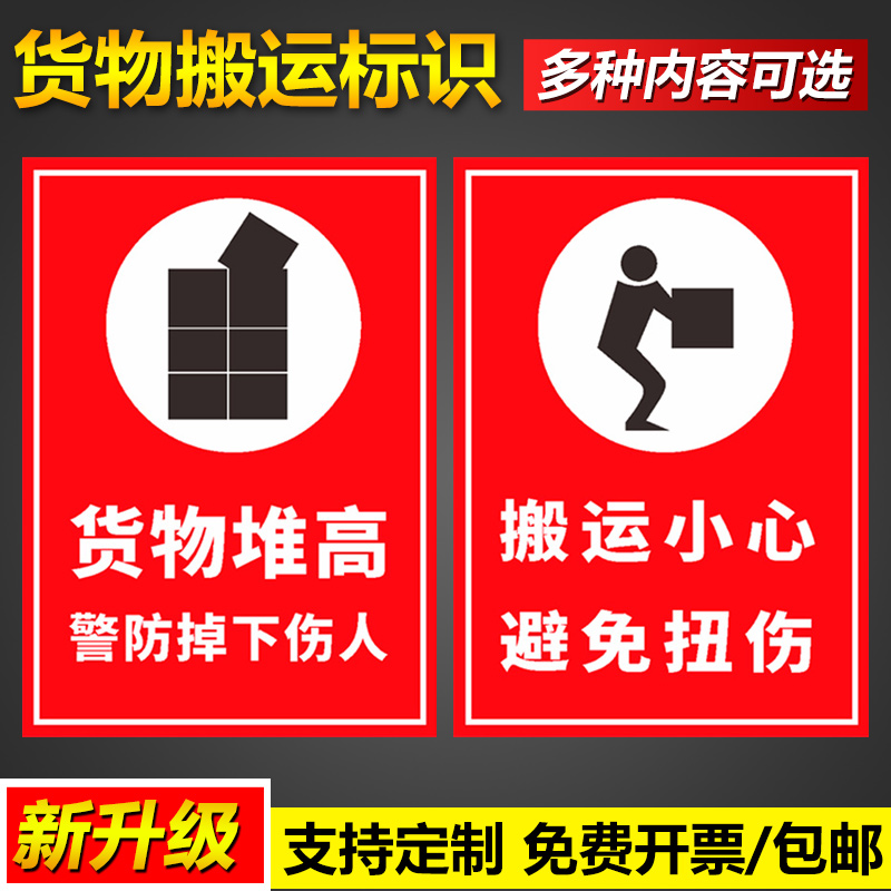 货物搬运标识牌货f物堆高警防掉下伤人标识贴纸搬运小心避免扭伤