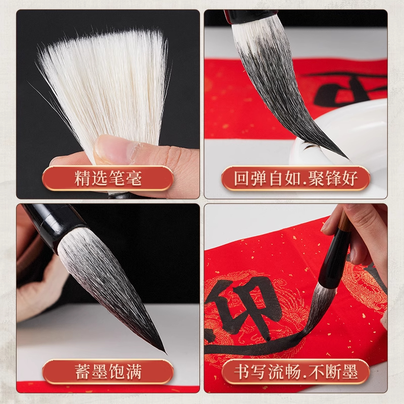 纯羊毫大号提斗毛笔写大字对联书法画画泼墨文房用品湖笔纯羊兼毫大毛笔初学者中号提笔粗斗笔春联笔隶书国画