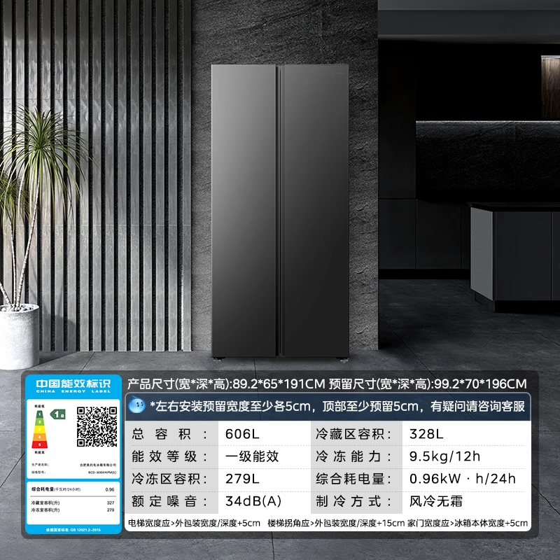 【政府补贴】美的606/605/572对开双开门大容量一级节能家用冰箱