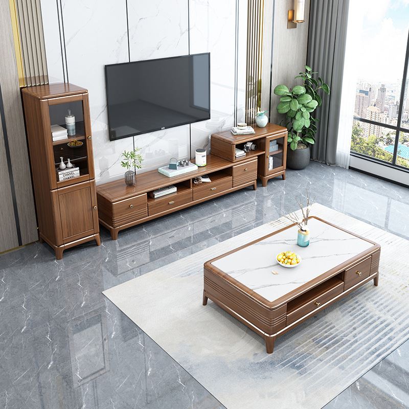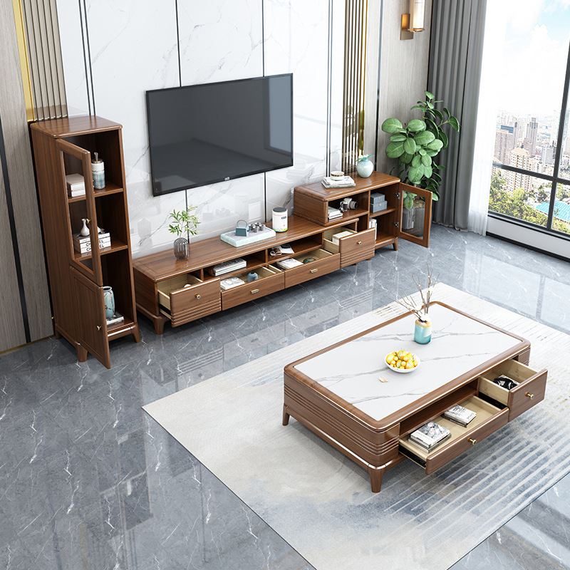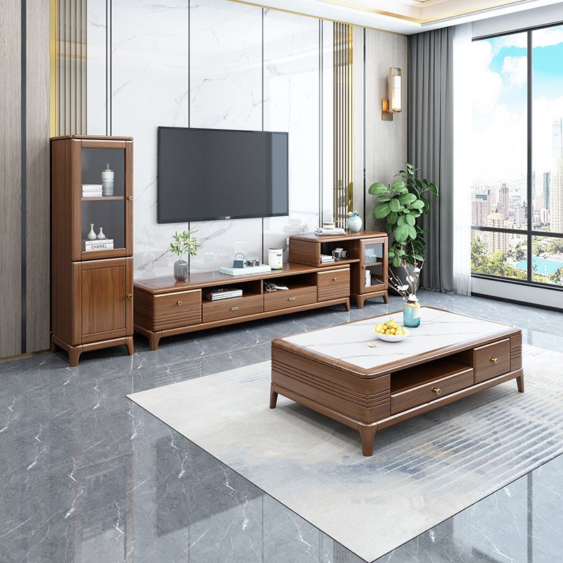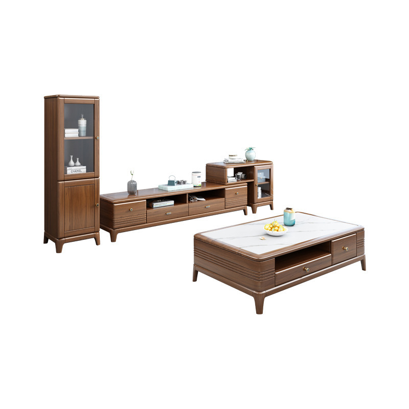 新中式实木电视柜茶几简约现代胡桃木家具配高低柜组合视听柜地柜