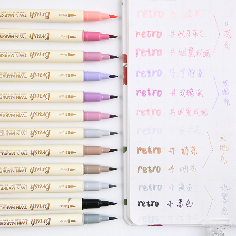 点石brush双头马克笔复古色水性软头绘画学生手帐专用荧光笔套装