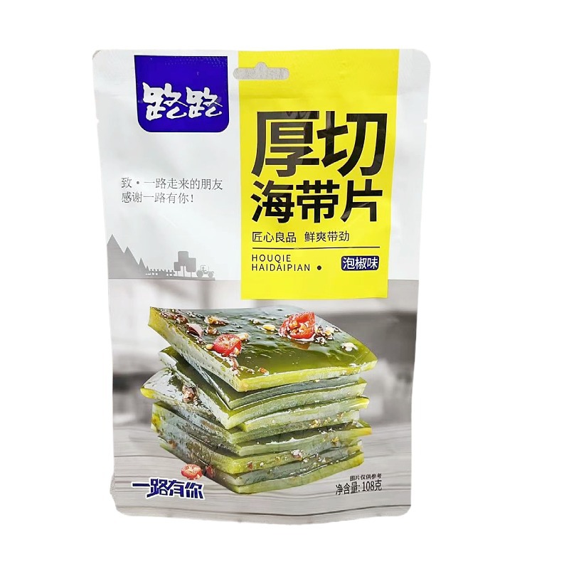 路路厚切海带片香辣爽口泡椒味即食海带片108g袋装海带零食
