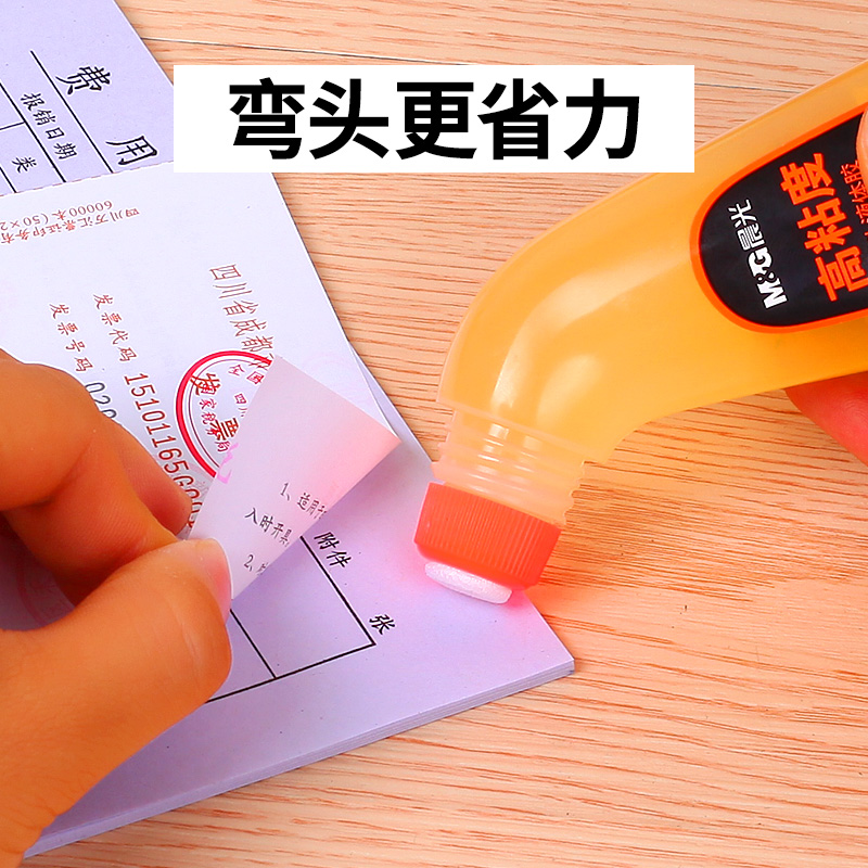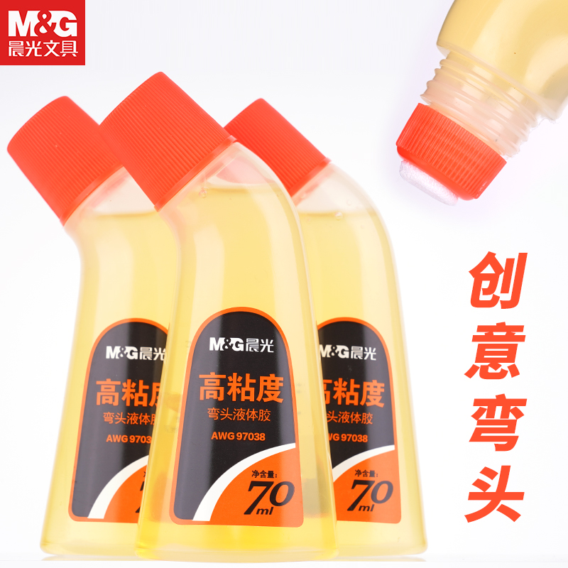 晨光强力弯头液体胶高浓度高粘力胶水学生海绵头黄胶液体胶手工美术透明办公财务用品70毫升3瓶包邮AWG97038