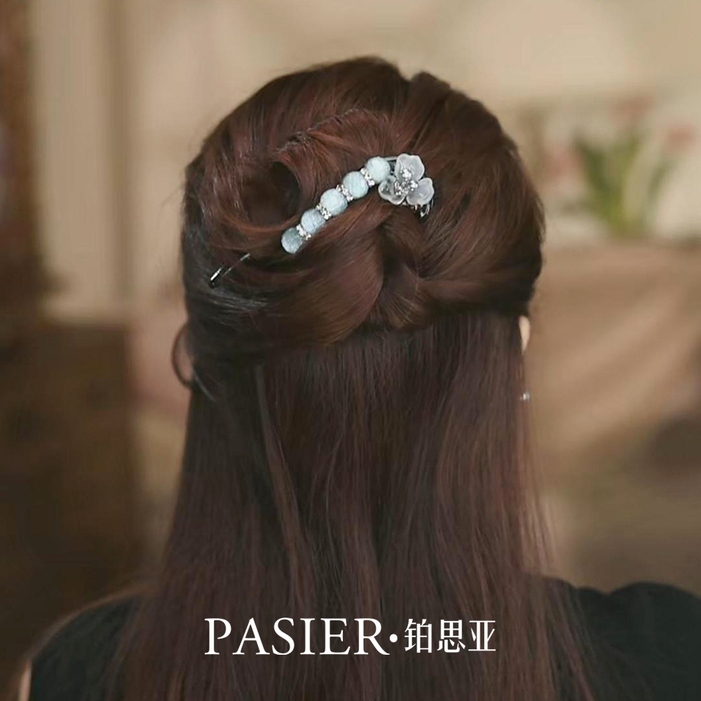 铂思亚青璃发夹女新中式风三叶花盘发扭扭夹优雅气质珠珠抓夹头饰